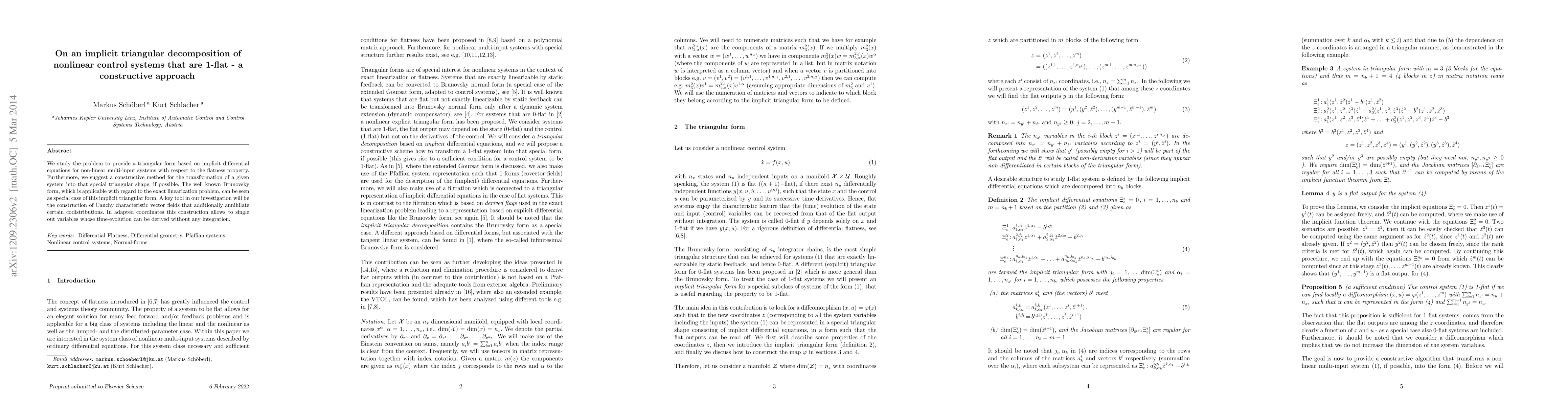 We study the problem to provide a triangular form based on implicit differential equations for non-linear multi-input systems with respect to the flatness property. Furthermore, we suggest a constructive method for the transformation of a given system into that special triangular shape, if possible. The well known Brunovsky form, which is applicable with regard to the exact linearization problem, can be seen as special case of this implicit triangular form. A key tool in our investigation will be the construction of Cauchy characteristic vector fields that additionally annihilate certain codistributions. In adapted coordinates this construction allows to single out variables whose time-evolution can be derived without any integration.