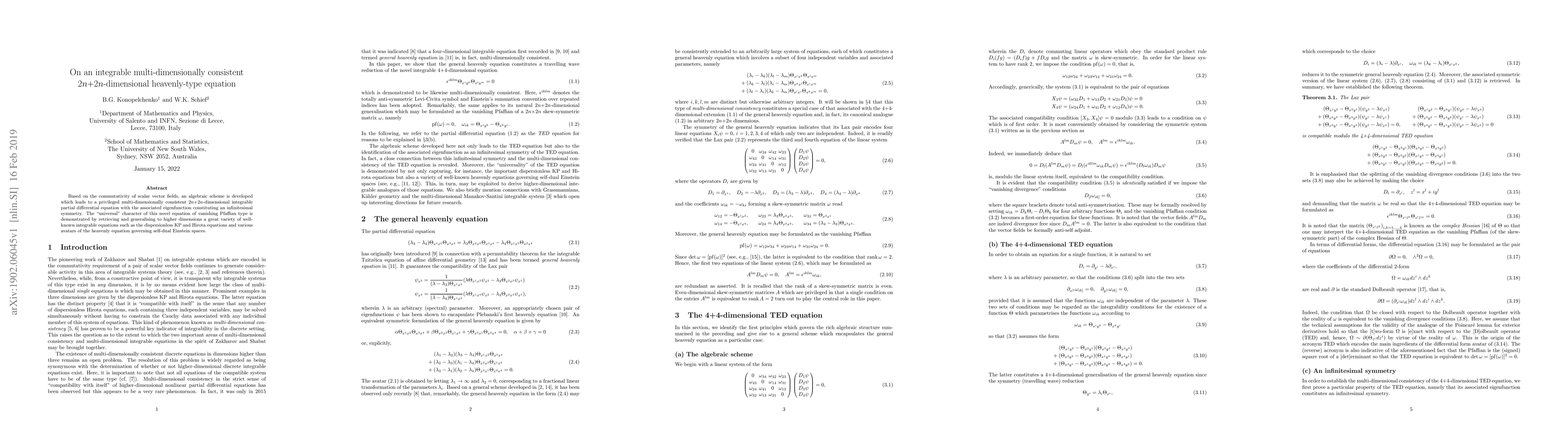 Based on the commutativity of scalar vector fields, an algebraic scheme is developed which leads to a privileged multi-dimensionally consistent 2n+2n-dimensional integrable partial differential equation with the associated eigenfunction constituting an infinitesimal symmetry. The "universal" character of this novel equation of vanishing Pfaffian type is demonstrated by retrieving and generalising to higher dimensions a great variety of well-known integrable equations such as the dispersionless KP and Hirota equations and various avatars of the heavenly equation governing self-dual Einstein spaces.