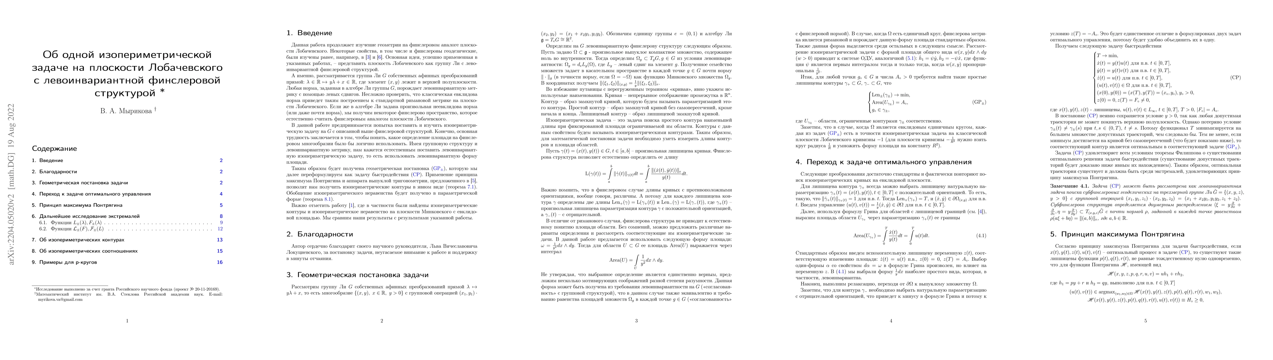 This paper investigates an isoperimetric problem on the Lobachevsky hyperbolic plane with a left-invariant Finsler structure, determining optimal isoperimetric loops using convex trigonometric functions and proposing a parametric generalization of the isoperimetric inequality.