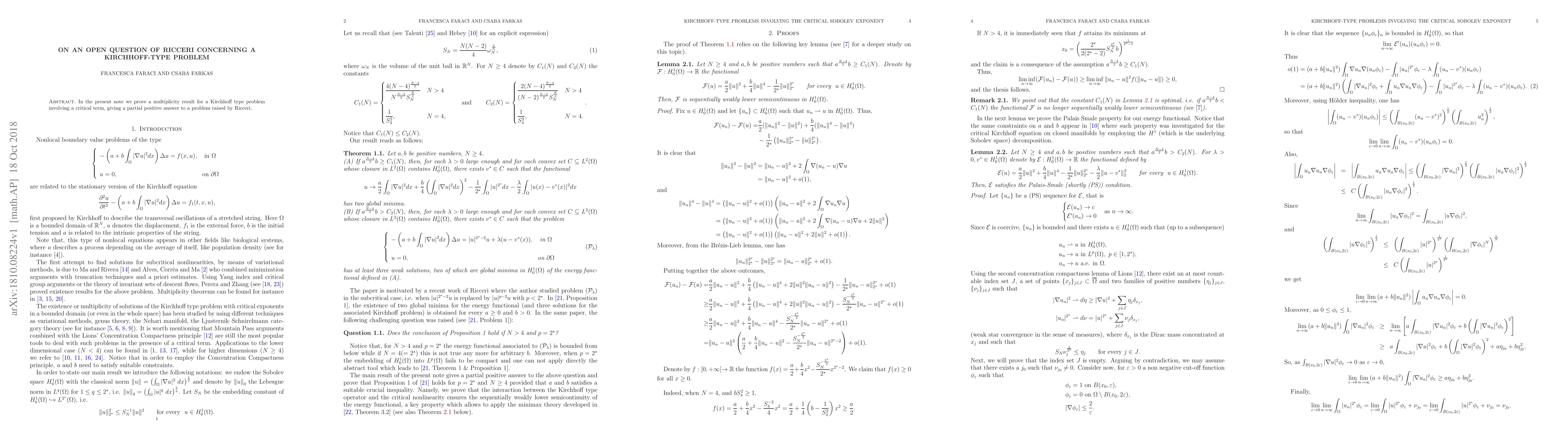 Summary: This paper proves a multiplicity result for a Kirchhoff-type problem with a critical term, providing a partial positive resolution to a question posed by Ricceri. The findings contribute to the understanding of such complex mathematical problems.