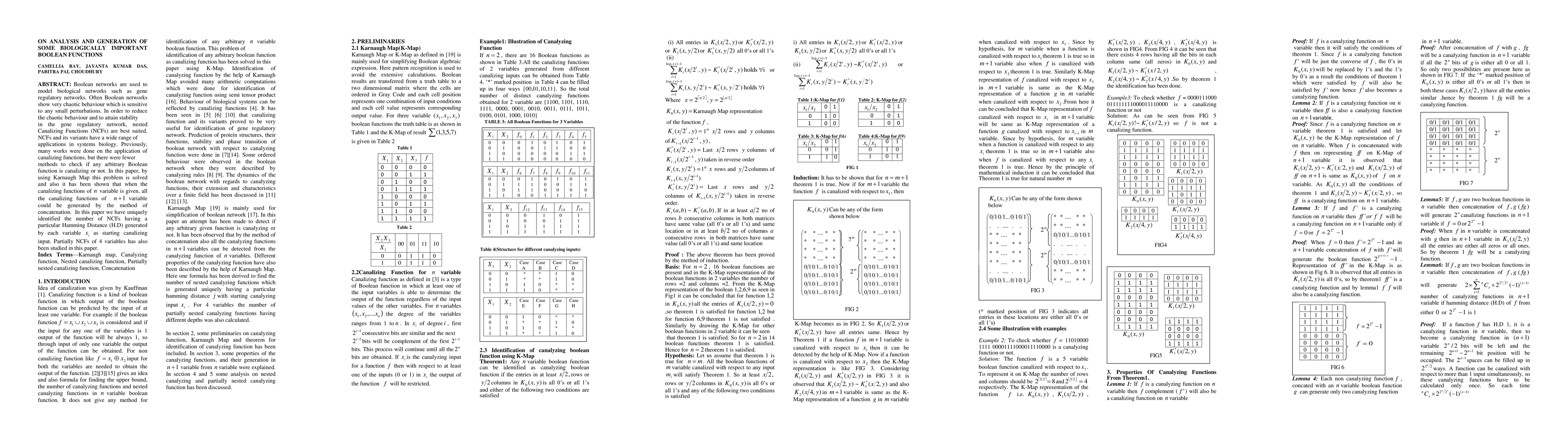 Boolean networks are used to model biological networks such as gene regulatory networks. Often Boolean networks show very chaotic behavior which is sensitive to any small perturbations.In order to reduce the chaotic behavior and to attain stability in the gene regulatory network,nested canalizing functions(NCF)are best suited NCF and its variants have a wide range of applications in system biology. Previously many work were done on the application of canalizing functions but there were fewer methods to check if any arbitrary Boolean function is canalizing or not. In this paper, by using Karnaugh Map this problem gas been solved and also it has been shown that when the canalizing functions of n variable is given, all the canalizing functions of n+1 variable could be generated by the method of concatenation. In this paper we have uniquely identified the number of NCFs having a particular hamming distance (H.D) generated by each variable x as starting canalizing input. Partially nested canalizing functions of 4 variables have also been studied in this paper. Keywords: Karnaugh Map, Canalizing function, Nested canalizing function, Partially nested canalizing function,concatenation