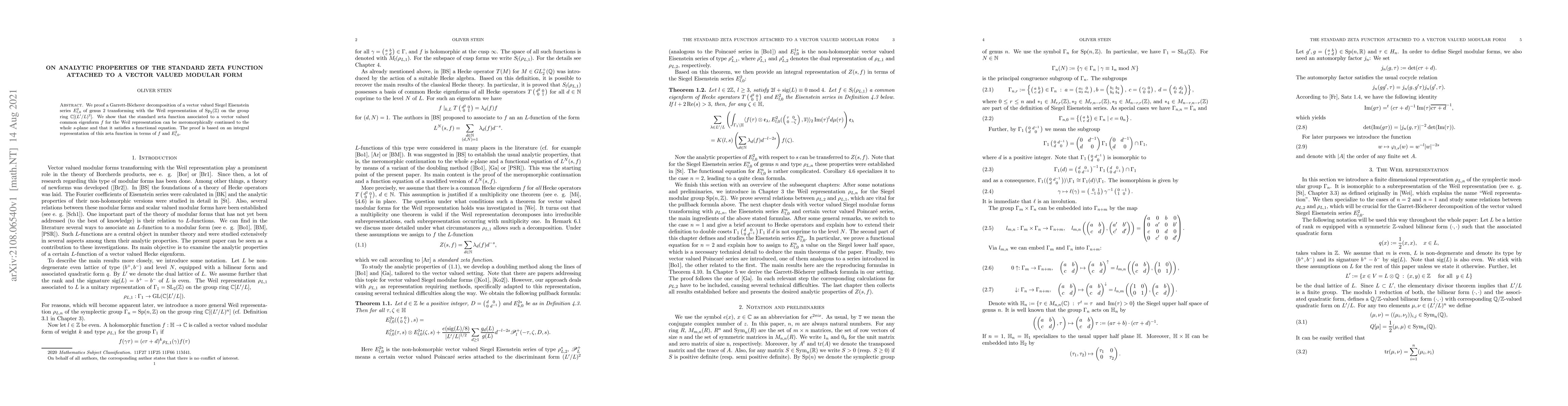 This paper proves a Garrett-Böcherer decomposition for a vector-valued Siegel Eisenstein series and demonstrates the meromorphic continuation and functional equation of the associated zeta function for a vector-valued common eigenform under the Weil representation, using an integral representation linking the zeta function to the series.