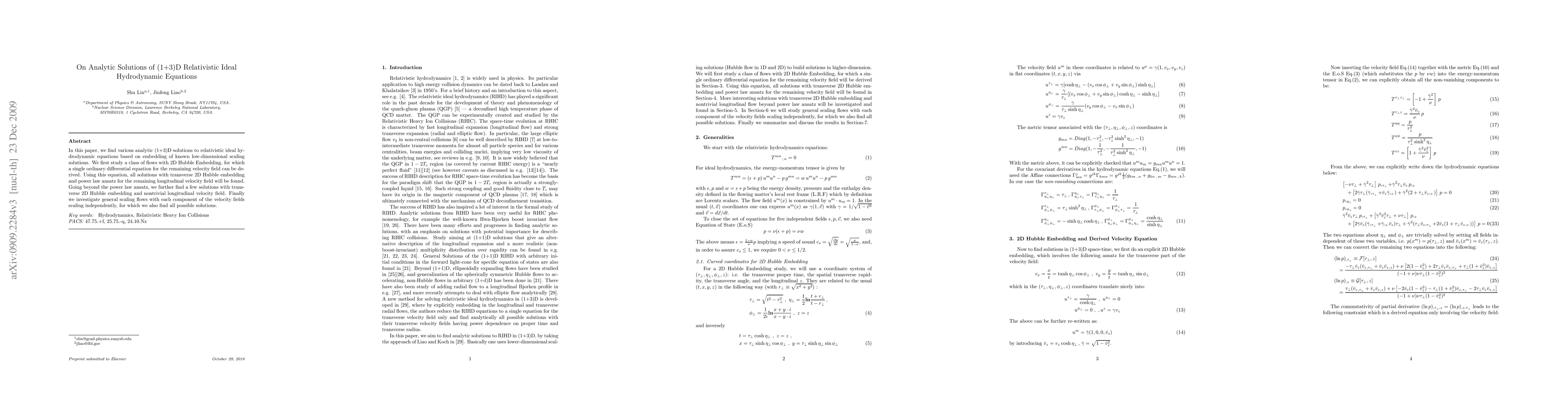 In this paper, we find various analytic (1+3)D solutions to relativistic ideal hydrodynamic equations based on embedding of known low-dimensional scaling solutions. We first study a class of flows with 2D Hubble Embedding, for which a single ordinary differential equation for the remaining velocity field can be derived. Using this equation, all solutions with transverse 2D Hubble embedding and power law ansatz for the remaining longitudinal velocity field will be found. Going beyond the power law ansatz, we further find a few solutions with transverse 2D Hubble embedding and nontrivial longitudinal velocity field. Finally we investigate general scaling flows with each component of the velocity fields scaling independently, for which we also find all possible solutions. Possible physical relevance of these solutions will be discussed.