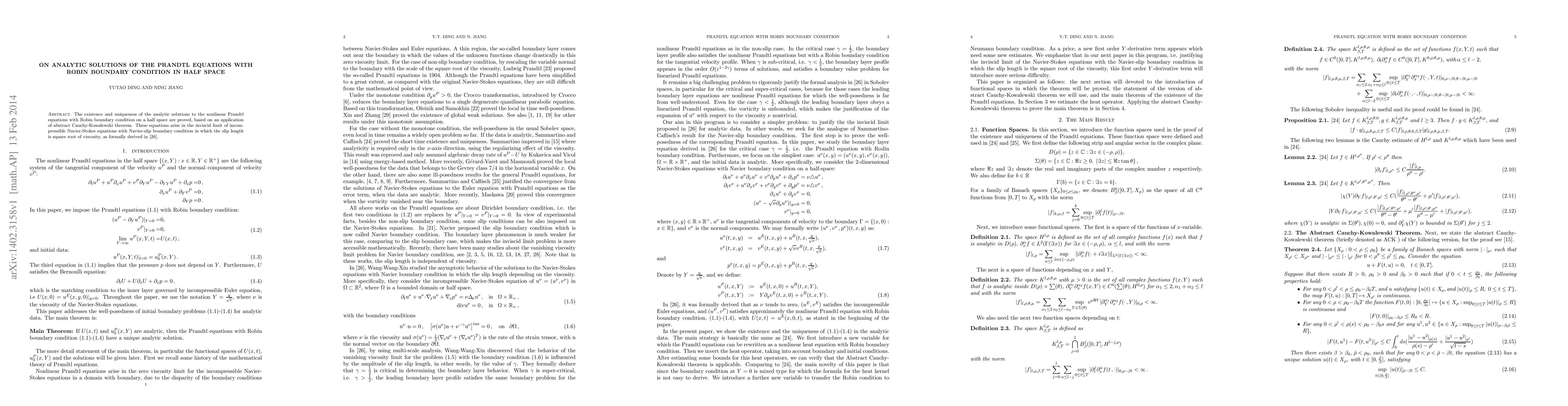 This paper proves the existence and uniqueness of analytic solutions to the nonlinear Prandtl equations with Robin boundary conditions in a half space, utilizing the abstract Cauchy-Kowalewski theorem. These equations emerge in the inviscid limit of incompressible Navier-Stokes equations with Navier-slip boundary conditions.