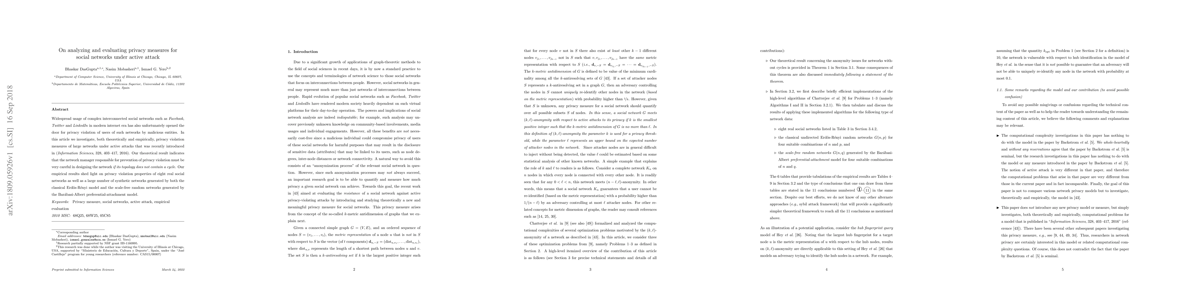 Researchers analyzed privacy measures for social networks under attack, finding that network design plays a crucial role in preventing violations. Their study sheds light on the properties of real and synthetic social networks to inform better security strategies.