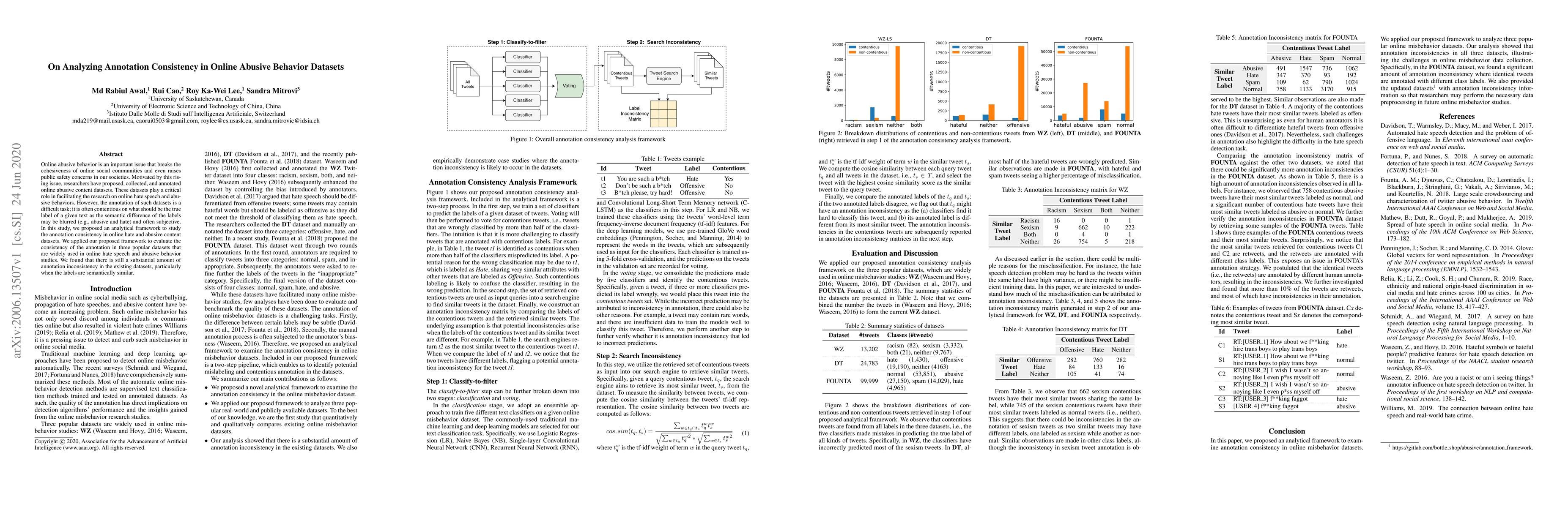 This study proposes an analytical framework to evaluate annotation consistency in popular online abusive behavior datasets, revealing significant inconsistency, especially for semantically similar labels like abusive and hate speech.