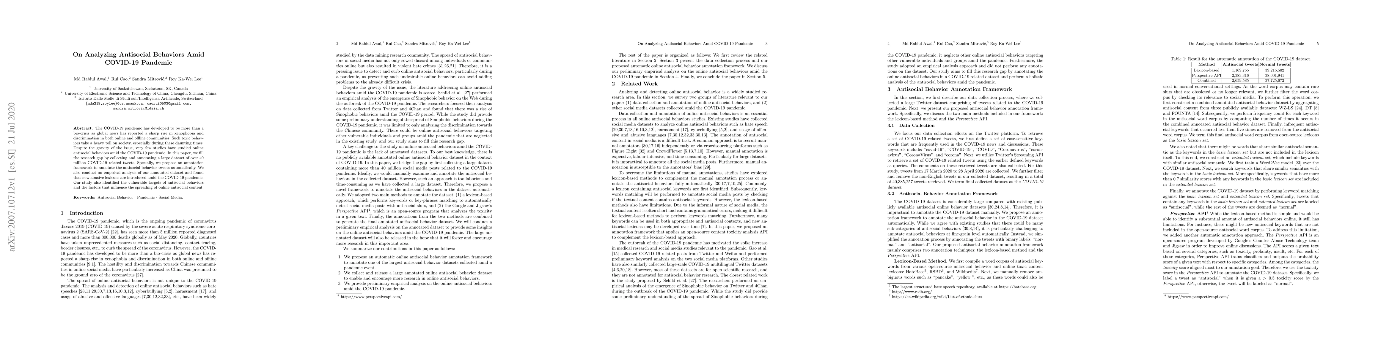 This paper investigates the rise in online and offline antisocial behaviors during the COVID-19 pandemic, analyzing a dataset of over 40 million COVID-19-related tweets. It proposes an annotation framework for identifying antisocial behaviors and finds new abusive lexicons, vulnerable targets, and factors influencing the spread of such content.