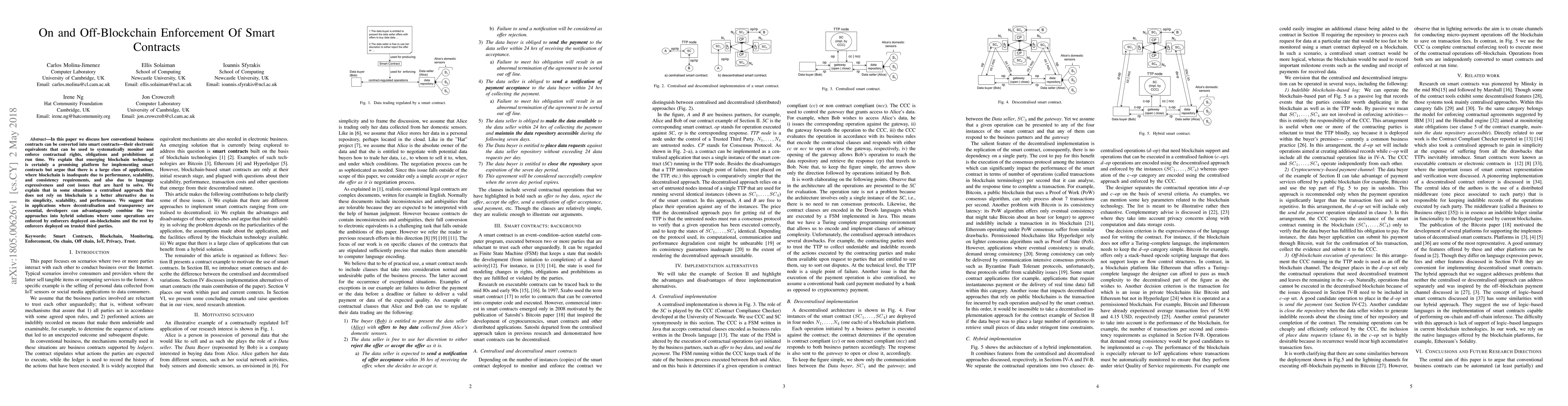 This paper explores the conversion of traditional business contracts into smart contracts, highlighting blockchain's potential and limitations. It proposes hybrid solutions combining blockchain and centralized enforcement for optimal performance and scalability.