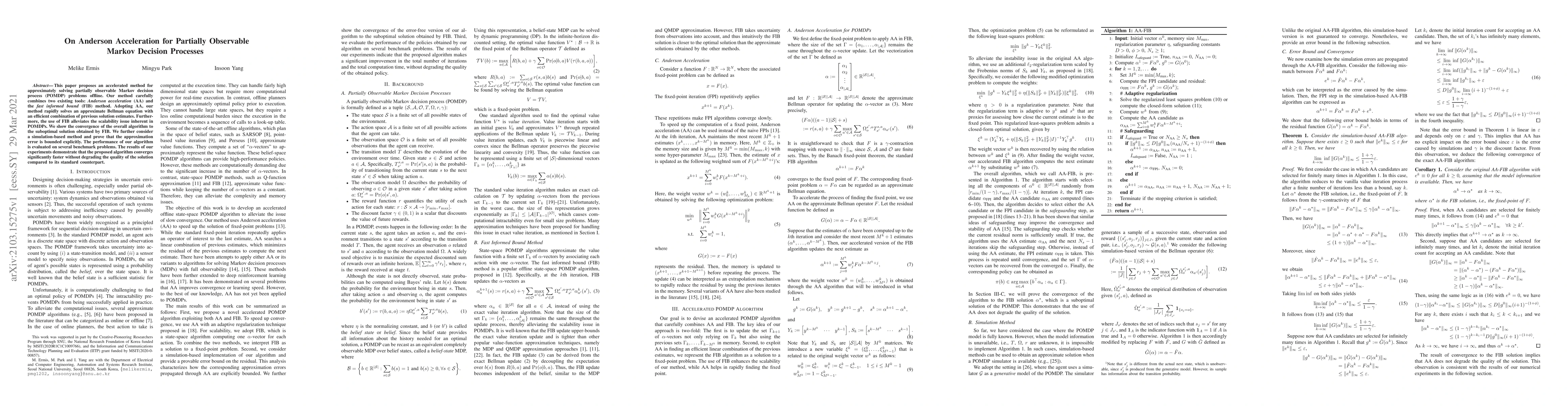 This paper proposes a method to solve partially observable Markov decision process problems offline by combining Anderson acceleration and the fast informed bound method, achieving significant speedup without compromising solution quality.