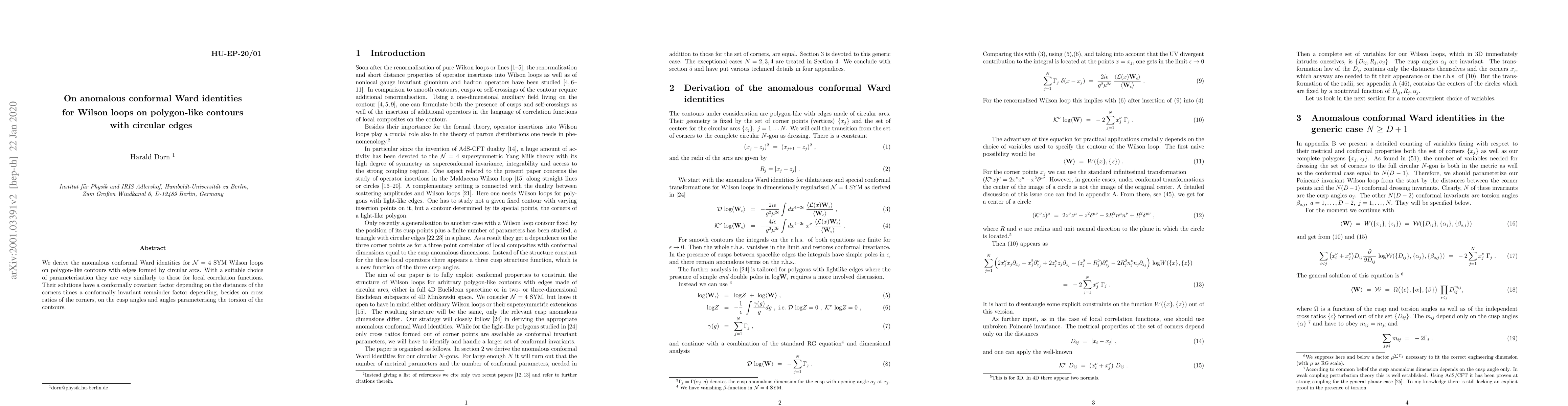 This paper derives anomalous conformal Ward identities for ${\cal N}=4$ SYM Wilson loops on polygon-like contours with circular edges. The identities exhibit similarities to those for local correlation functions and their solutions involve a conformally covariant factor based on corner distances and a conformally invariant remainder factor dependent on cross ratios, cusp angles, and contour torsion angles.