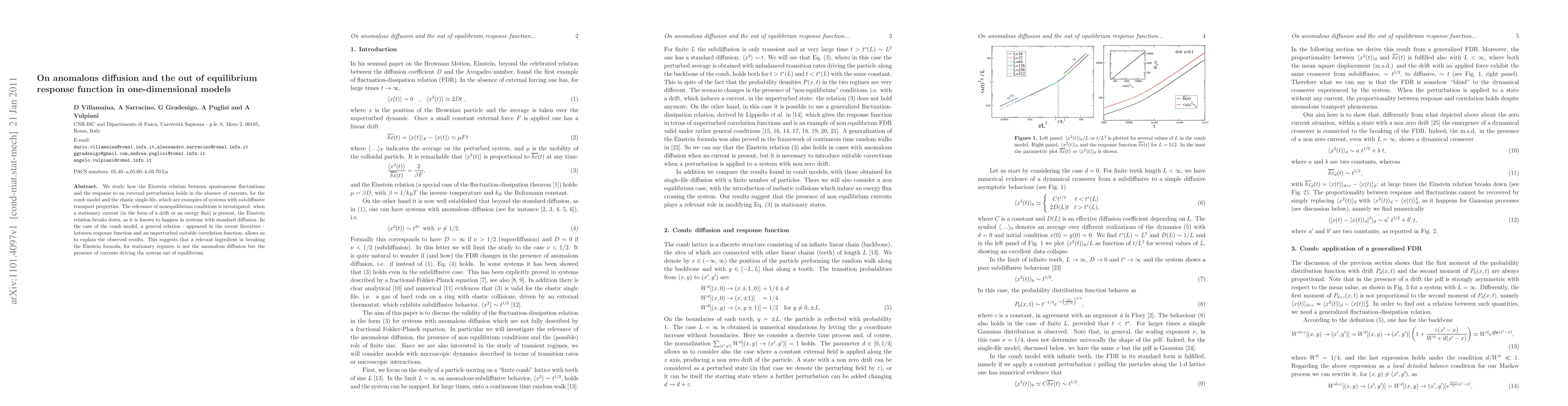 We study how the Einstein relation between spontaneous fluctuations and the response to an external perturbation holds in the absence of currents, for the comb model and the elastic single-file, which are examples of systems with subdiffusive transport properties. The relevance of non-equilibrium conditions is investigated: when a stationary current (in the form of a drift or an energy flux) is present, the Einstein relation breaks down, as is known to happen in systems with standard diffusion. In the case of the comb model, a general relation, which has appeared in the recent literature, between the response function and an unperturbed suitable correlation function, allows us to explain the observed results. This suggests that a relevant ingredient in breaking the Einstein formula, for stationary regimes, is not the anomalous diffusion but the presence of currents driving the system out of equilibrium.