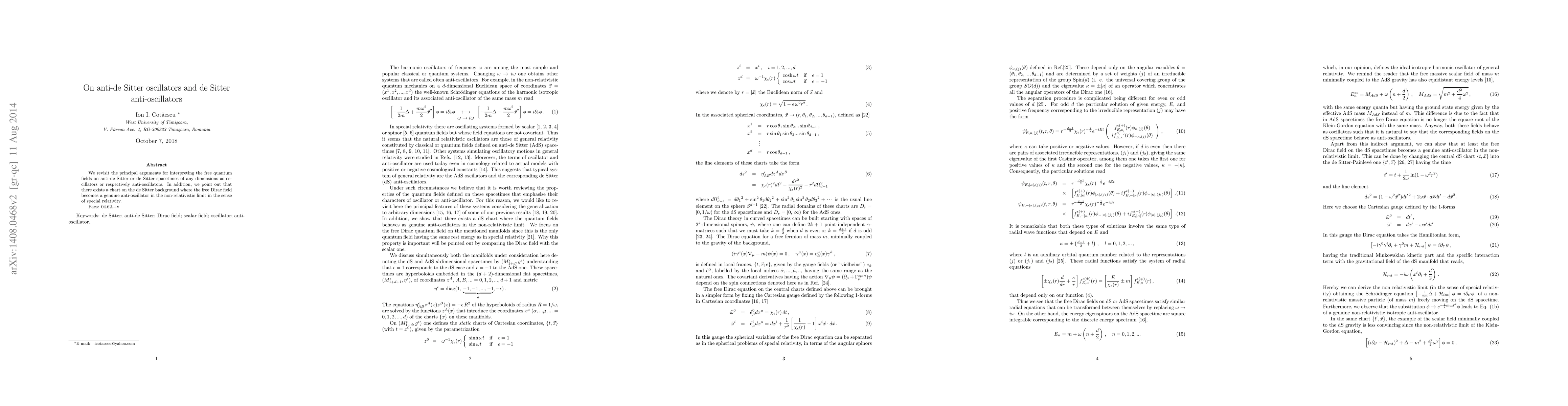 Summary: This paper reinterprets free quantum fields on anti-de Sitter and de Sitter spacetimes as oscillators and anti-oscillators, respectively, and highlights that the Dirac field on de Sitter can behave as an anti-oscillator in the non-relativistic limit under special relativity.