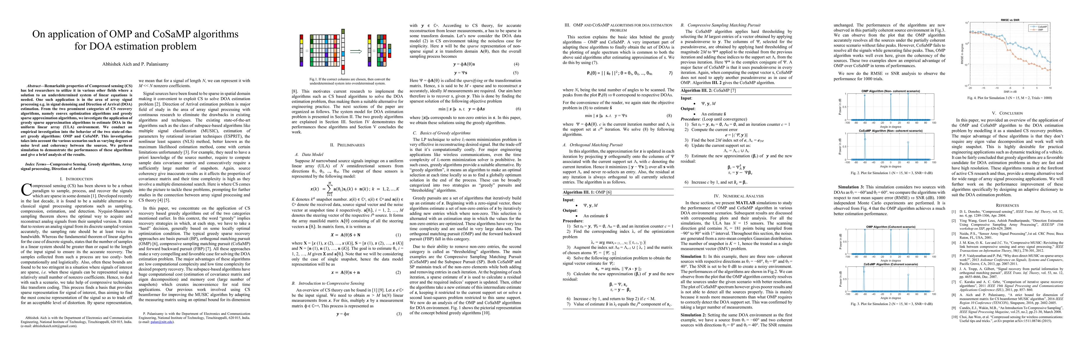 Remarkable properties of Compressed sensing (CS) has led researchers to utilize it in various other fields where a solution to an underdetermined system of linear equations is needed. One such application is in the area of array signal processing e.g. in signal denoising and Direction of Arrival (DOA) estimation. From the two prominent categories of CS recovery algorithms, namely convex optimization algorithms and greedy sparse approximation algorithms, we investigate the application of greedy sparse approximation algorithms to estimate DOA in the uniform linear array (ULA) environment. We conduct an empirical investigation into the behavior of the two state-of-the-art greedy algorithms: OMP and CoSaMP. This investigation takes into account the various scenarios such as varying degrees of noise level and coherency between the sources. We perform simulations to demonstrate the performances of these algorithms and give a brief analysis of the results.
