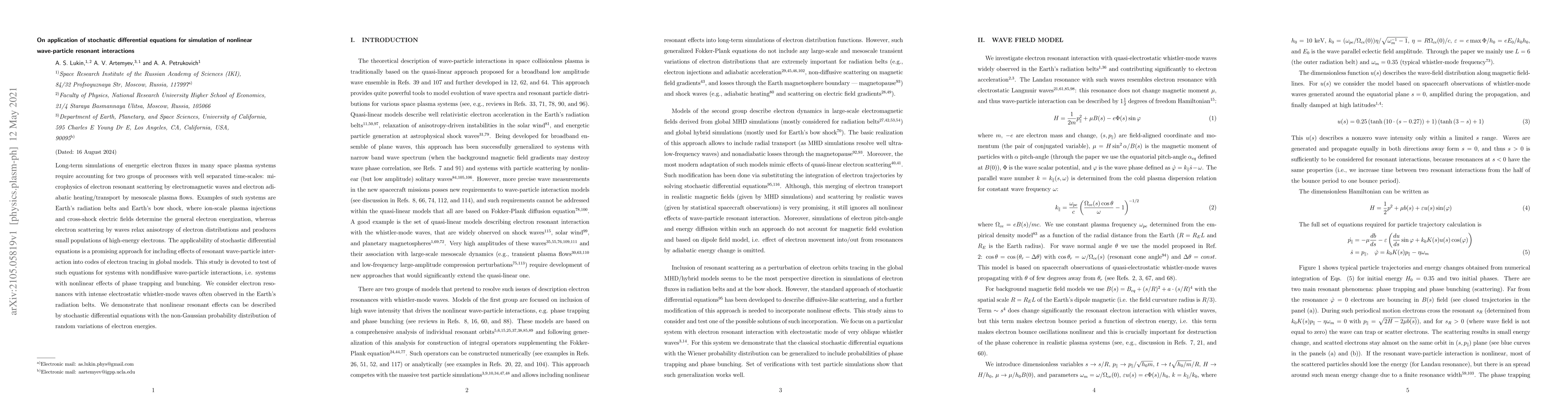 This paper explores the use of stochastic differential equations to simulate nonlinear wave-particle resonant interactions in space plasma systems, focusing on electron scattering by electromagnetic waves and the resulting energization. It demonstrates that these equations can effectively model nondiffusive interactions, including phase trapping and bunching, in systems like Earth's radiation belts.