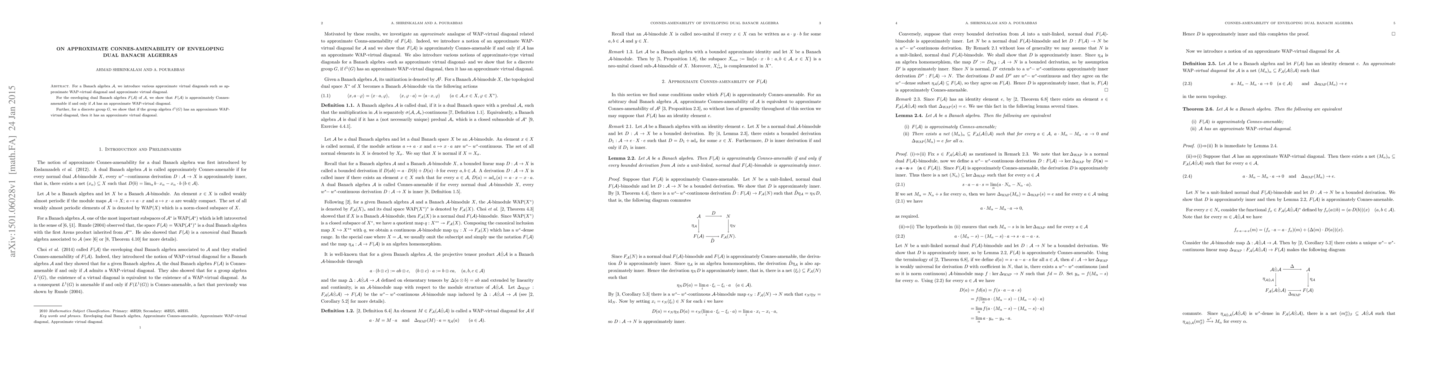 This paper introduces various approximate virtual diagonals in Banach algebras and proves that the enveloping dual Banach algebra is approximately Connes-amenable if the original algebra has an approximate WAP-virtual diagonal. Additionally, it shows that if the group algebra of a discrete group has an approximate WAP-virtual diagonal, it also possesses an approximate virtual diagonal.