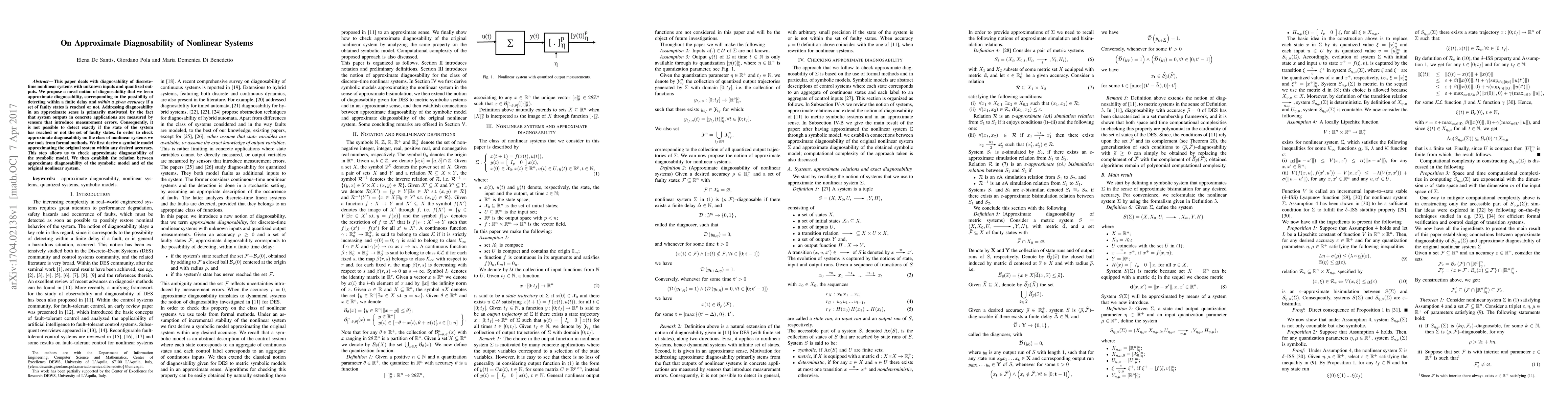 This paper introduces the concept of approximate diagnosability for discrete-time nonlinear systems with measurement errors, proposing a method to detect faulty states within a finite delay and given accuracy. It uses formal methods to derive a symbolic model and establishes a relation between the approximate diagnosability of this model and the original system.