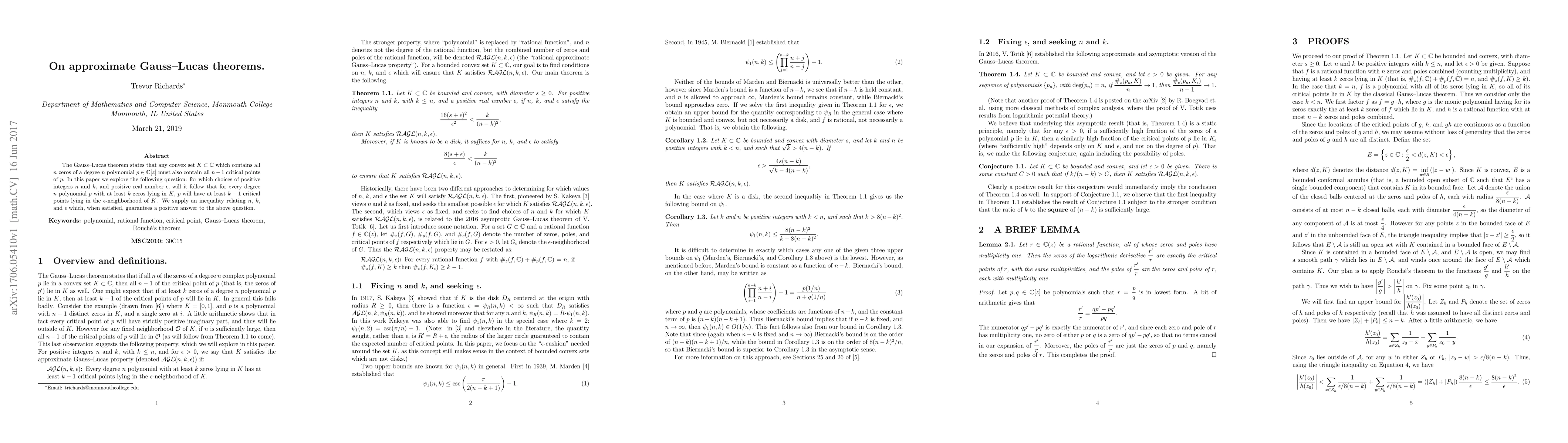 The Gauss--Lucas theorem states that any convex set $K\subset\mathbb{C}$ which contains all $n$ zeros of a degree $n$ polynomial $p\in\mathbb{C}[z]$ must also contain all $n-1$ critical points of $p$. In this paper we explore the following question: for which choices of positive integers $n$ and $k$, and positive real number $\epsilon$, will it follow that for every degree $n$ polynomial $p$ with at least $k$ zeros lying in $K$, $p$ will have at least $k-1$ critical points lying in the $\epsilon$-neighborhood of $K$. We supply an inequality relating $n$, $k$, and $\epsilon$ which, when satisfied, guarantees a positive answer to the above question.