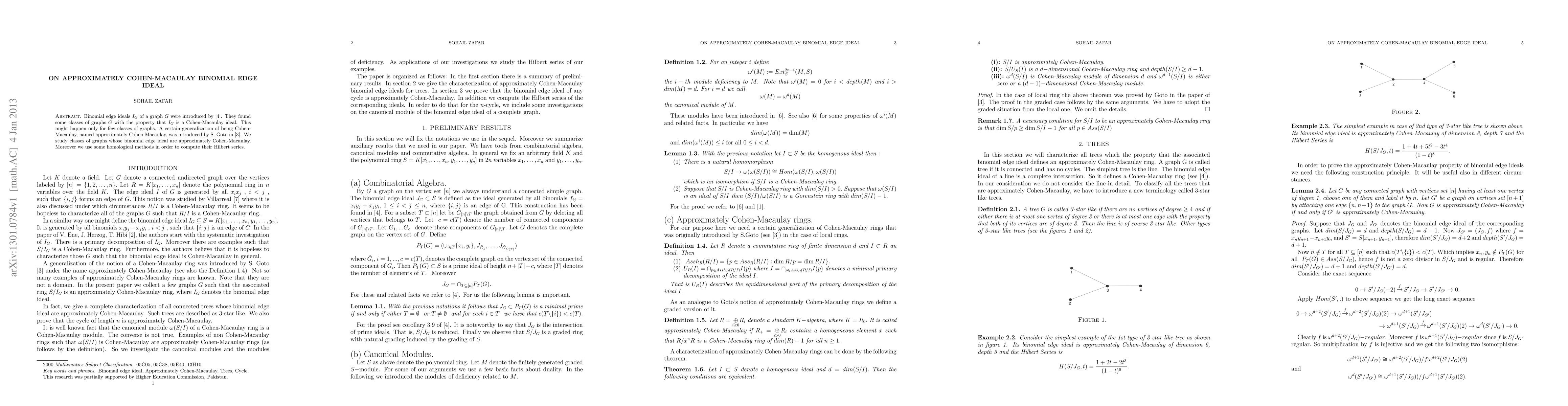 Binomial edge ideals IG of a graph G were introduced by [4]. They found some classes of graphs G with the property that IG is a Cohen-Macaulay ideal. This might happen only for few classes of graphs. A certain generalization of being Cohen-Macaulay, named approximately Cohen-Macaulay, was introduced by S. Goto in [3]. We study classes of graphs whose binomial edge ideal are approximately Cohen-Macaulay. Moreover we use some homological methods in order to compute their Hilbert series.