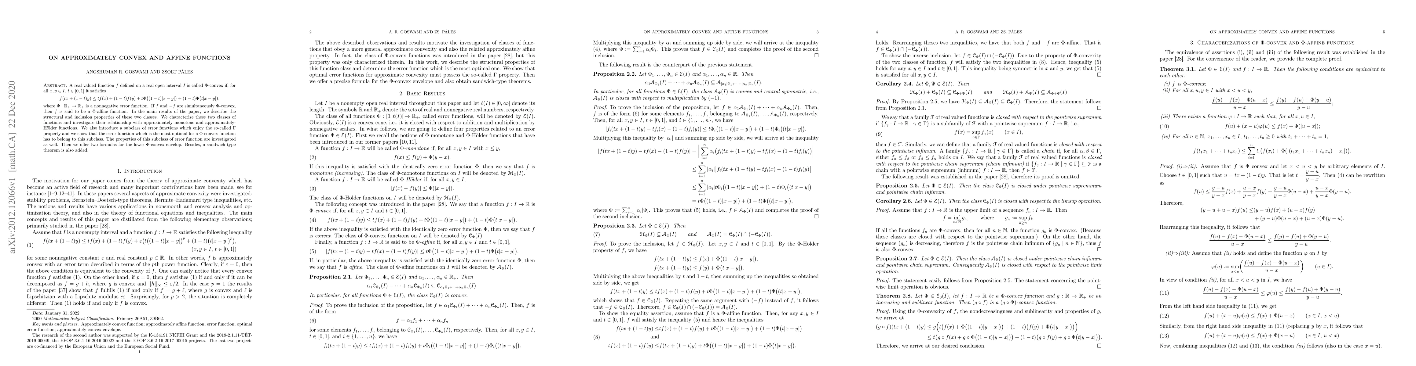 A real valued function $f$ defined on a real open interval $I$ is called $\Phi$-convex if, for all $x,y\in I$, $t\in[0,1]$ it satisfies $$ f(tx+(1-t)y)\leq tf(x)+(1-t)f(y)+t\Phi\big((1-t)|x-y|\big)+(1-t)\Phi\big(t|x-y|\big), $$ where $\Phi:\mathbb{R}_+\to\mathbb{R}_+$ is a nonnegative error function. If $f$ and $-f$ are simultaneously $\Phi$-convex, then $f$ is said to be a $\Phi$-affine function. In the main results of the paper, we describe the structural and inclusion properties of these two classes. We characterize these two classes of functions and investigate their relationship with approximately monotone and approximately-H\"older functions. We also introduce a subclass of error functions which enjoy the so-called $\Gamma$ property and we show that the error function which is the most optimal for a $\Phi$-convex function has to belong to this subclass. The properties of this subclass of error function are investigated as well. Then we offer two formulas for the lower $\Phi$-convex envelop. Besides, a sandwich type theorem is also added.
