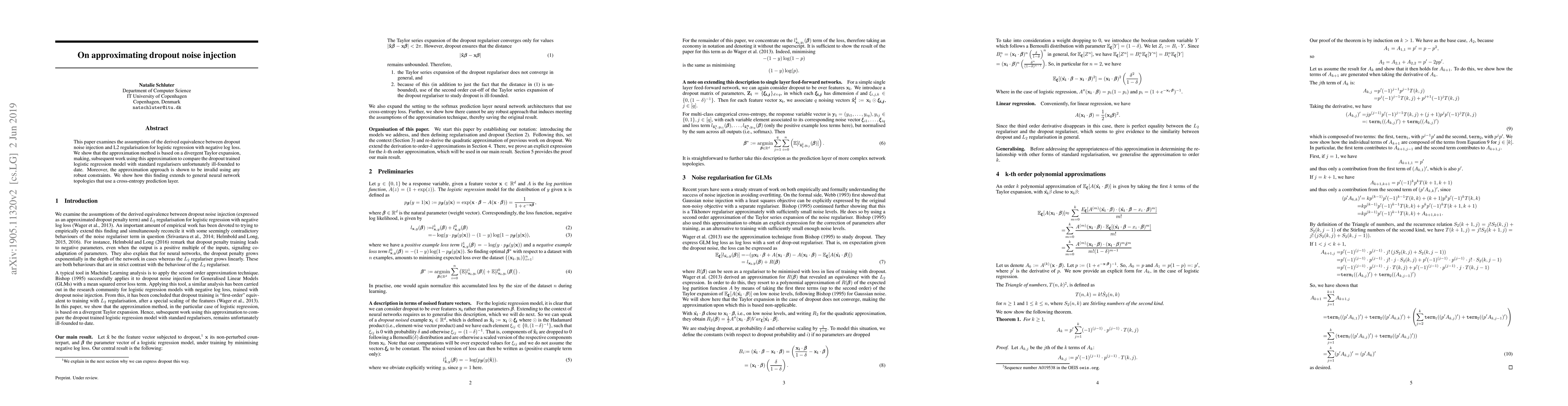 Researchers found that approximating dropout noise injection with $L_2$ regularization is invalid and based on a divergent Taylor expansion, which invalidates comparisons between the two methods. This finding has implications for neural networks using cross-entropy prediction layers.