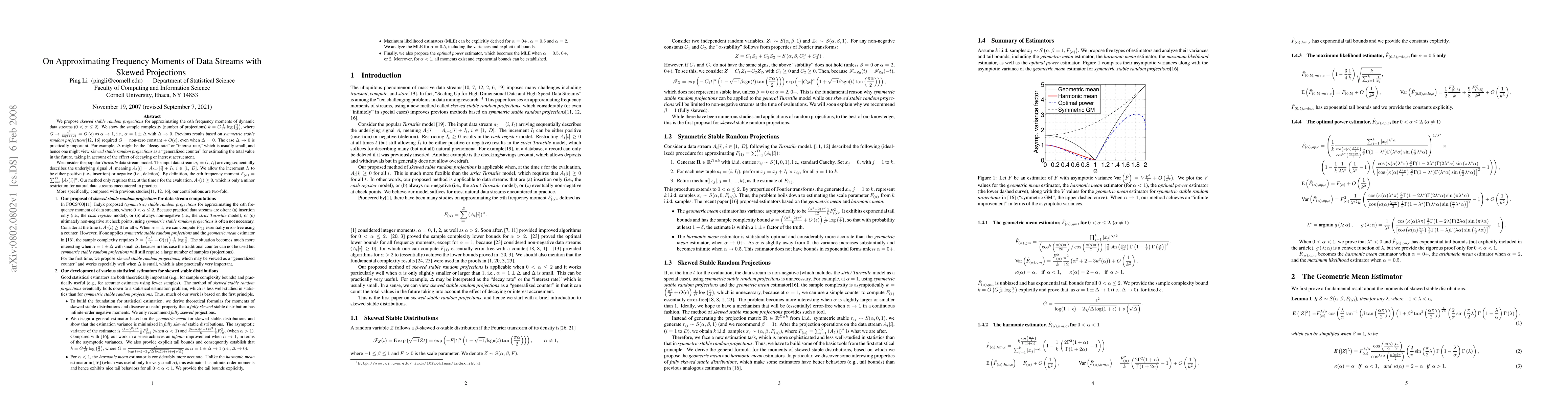 We propose skewed stable random projections for approximating the pth frequency moments of dynamic data streams (0