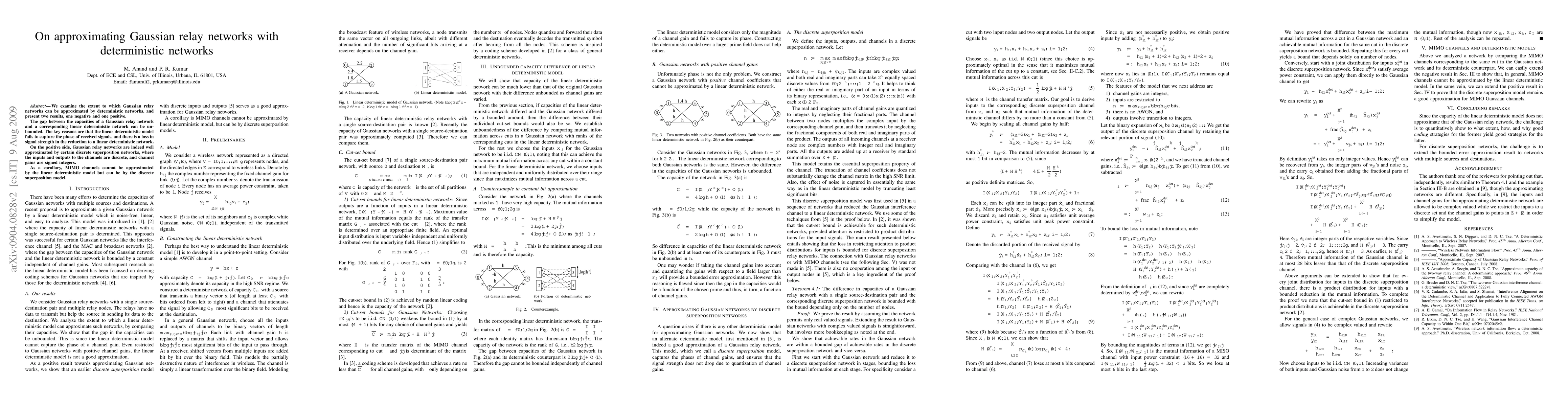 This paper investigates the approximation of Gaussian relay networks by deterministic networks, revealing that while linear deterministic models cannot capture the full capacity due to signal phase and strength loss, discrete superposition networks provide a better approximation. It concludes that MIMO channels are better modeled by discrete superposition rather than linear deterministic models.