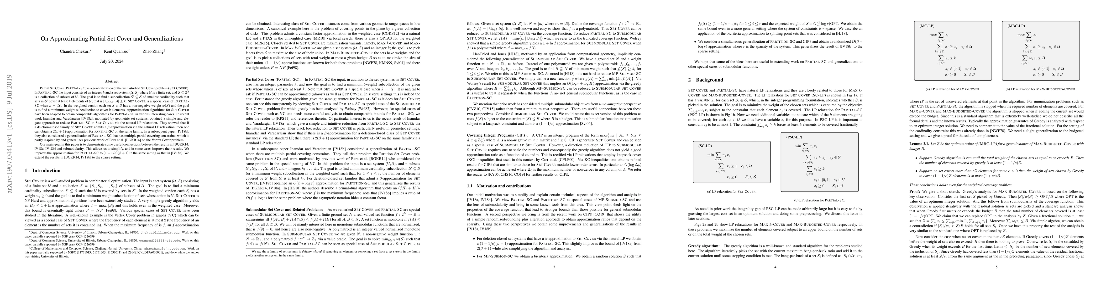 Partial Set Cover (PSC) is a generalization of the well-studied Set Cover problem (SC). In PSC the input consists of an integer $k$ and a set system $(U,S)$ where $U$ is a finite set, and $S \subseteq 2^U$ is a collection of subsets of $U$. The goal is to find a subcollection $S' \subseteq S$ of smallest cardinality such that sets in $S'$ cover at least $k$ elements of $U$; that is $|\cup_{A \in S'} A| \ge k$. SC is a special case of PSC when $k = |U|$. In the weighted version each set $X \in S$ has a non-negative weight $w(X)$ and the goal is to find a minimum weight subcollection to cover $k$ elements. Approximation algorithms for SC have been adapted to obtain comparable algorithms for PSC in various interesting cases. In recent work Inamdar and Varadarajan, motivated by geometric set systems, obtained a simple and elegant approach to reduce PSC to SC via the natural LP relaxation. They showed that if a deletion-closed family of SC admits a $\beta$-approximation via the natural LP relaxation, then one can obtain a $2(\beta + 1)$-approximation for PSC on the same family. In a subsequent paper, they also considered a generalization of PSC that has multiple partial covering constraints which is partly inspired by and generalizes previous work of Bera et al on the Vertex Cover problem. Our main goal in this paper is to demonstrate some useful connections between the results in previous work and submodularity. This allows us to simplify, and in some cases improve their results. We improve the approximation for PSC to $(1-1/e)(\beta + 1)$. We extend the previous work to the sparse setting.