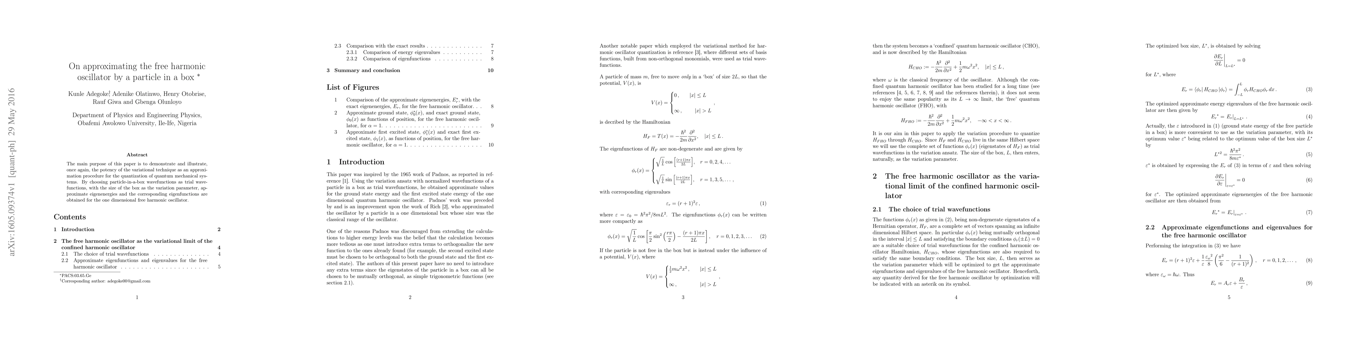 This paper employs variational techniques using particle-in-a-box trial wavefunctions to approximate the eigenenergies and eigenfunctions of a one-dimensional free harmonic oscillator, showcasing the effectiveness of this method in quantum mechanics.