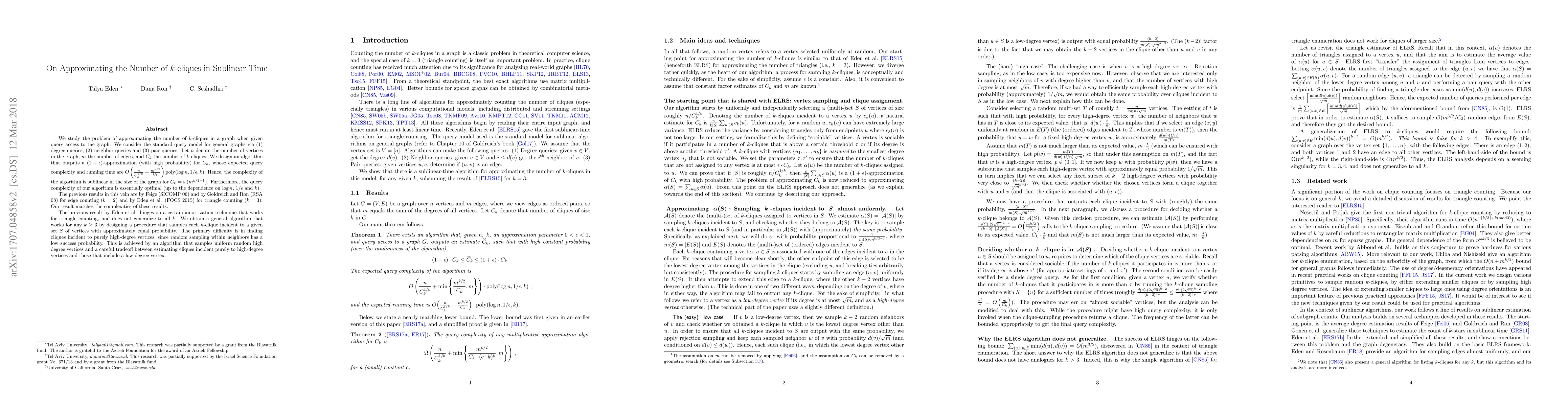 This paper presents an algorithm for approximating the number of $k$-cliques in a graph using sublinear time complexity, achieving a $(1+\varepsilon)$-approximation with high probability. The algorithm's complexity is sublinear when the number of $k$-cliques is significantly larger than $m^{k/2-1}$, and it generalizes to any $k \geq 3$, overcoming limitations of previous methods.