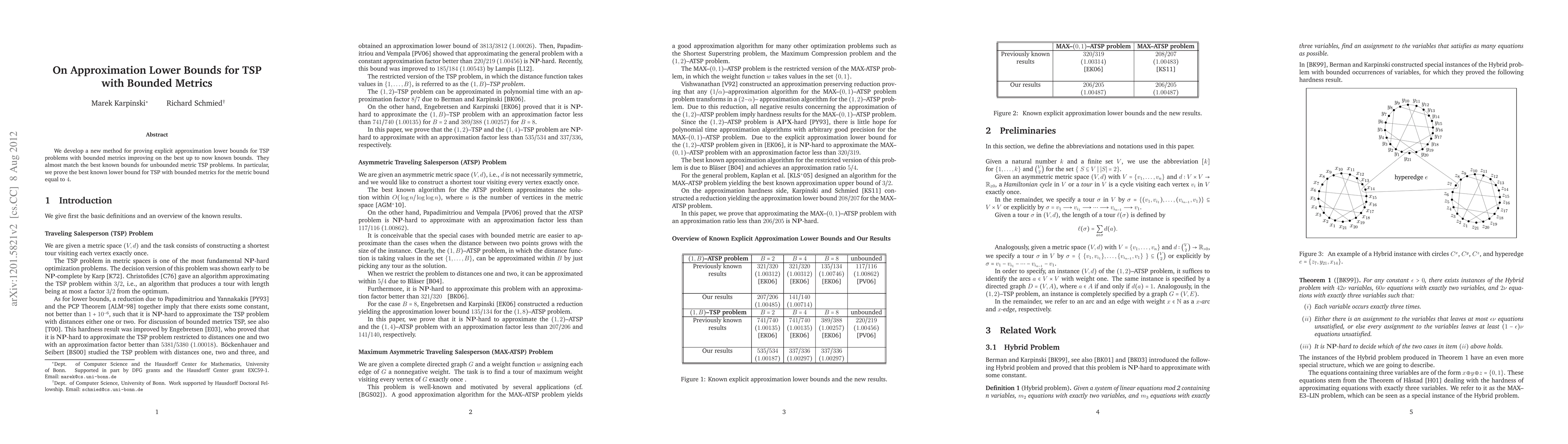 We develop a new method for proving explicit approximation lower bounds for TSP problems with bounded metrics improving on the best up to now known bounds. They almost match the best known bounds for unbounded metric TSP problems. In particular, we prove the best known lower bound for TSP with bounded metrics for the metric bound equal to 4.