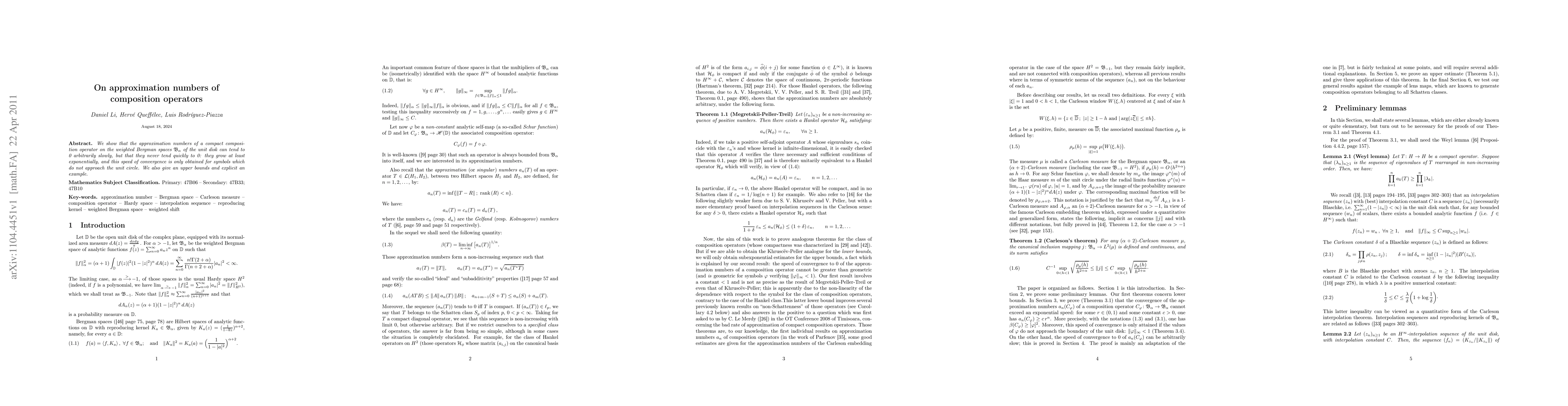 The paper shows that composition operators on weighted Bergman spaces have approximation numbers that grow exponentially as the operator approaches the unit circle, never quickly approaching 0.