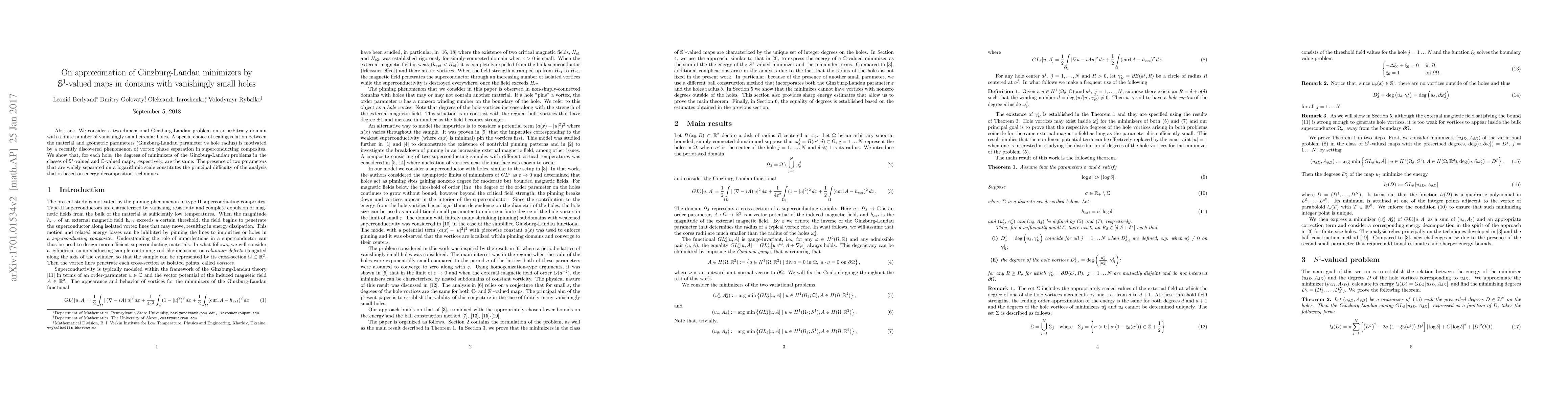 We consider a two-dimensional Ginzburg-Landau problem on an arbitrary domain with a finite number of vanishingly small circular holes. A special choice of scaling relation between the material and geometric parameters (Ginzburg-Landau parameter vs hole radius) is motivated by a recently dsicovered phenomenon of vortex phase separation in superconducting composites. We show that, for each hole, the degrees of minimizers of the Ginzburg-Landau problems in the classes of $\mathbb S^1$-valued and $\mathbb C$-valued maps, respectively, are the same. The presence of two parameters that are widely separated on a logarithmic scale constitutes the principal difficulty of the analysis that is based on energy decomposition techniques.