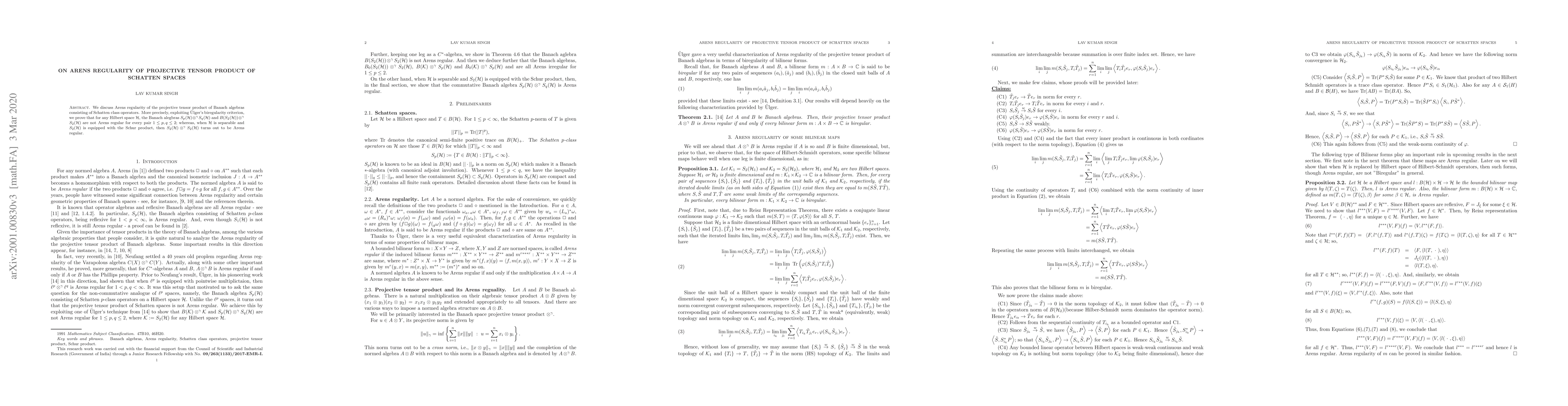 This paper investigates the Arens regularity of the projective tensor product of Schatten p-class operators, demonstrating that $S_p(\mathcal H)\otimes^\gamma S_q(\mathcal H)$ is not Arens regular using Ulger's biregularity condition. It also shows that $B(S_2(\mathcal H))\otimes^\gamma S_2(\mathcal H)$ is not Arens regular under usual multiplication but is regular with respect to the Schur product, highlighting the significance of Ulger's biregularity condition.