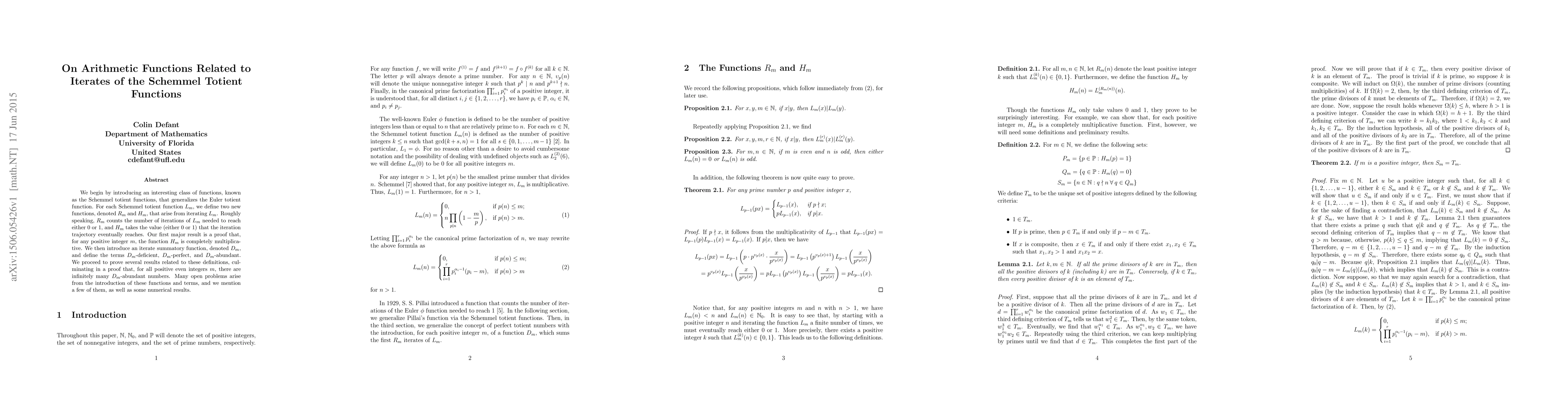 We begin by introducing an interesting class of functions, known as the Schemmel totient functions, that generalizes the Euler totient function. For each Schemmel totient function $L_m$, we define two new functions, denoted $R_m$ and $H_m$, that arise from iterating $L_m$. Roughly speaking, $R_m$ counts the number of iterations of $L_m$ needed to reach either $0$ or $1$, and $H_m$ takes the value (either $0$ or $1$) that the iteration trajectory eventually reaches. Our first major result is a proof that, for any positive integer $m$, the function $H_m$ is completely multiplicative. We then introduce an iterate summatory function, denoted $D_m$, and define the terms $D_m$-deficient, $D_m$-perfect, and $D_m$-abundant. We proceed to prove several results related to these definitions, culminating in a proof that, for all positive even integers $m$, there are infinitely many $D_m$-abundant numbers. Many open problems arise from the introduction of these functions and terms, and we mention a few of them, as well as some numerical results.