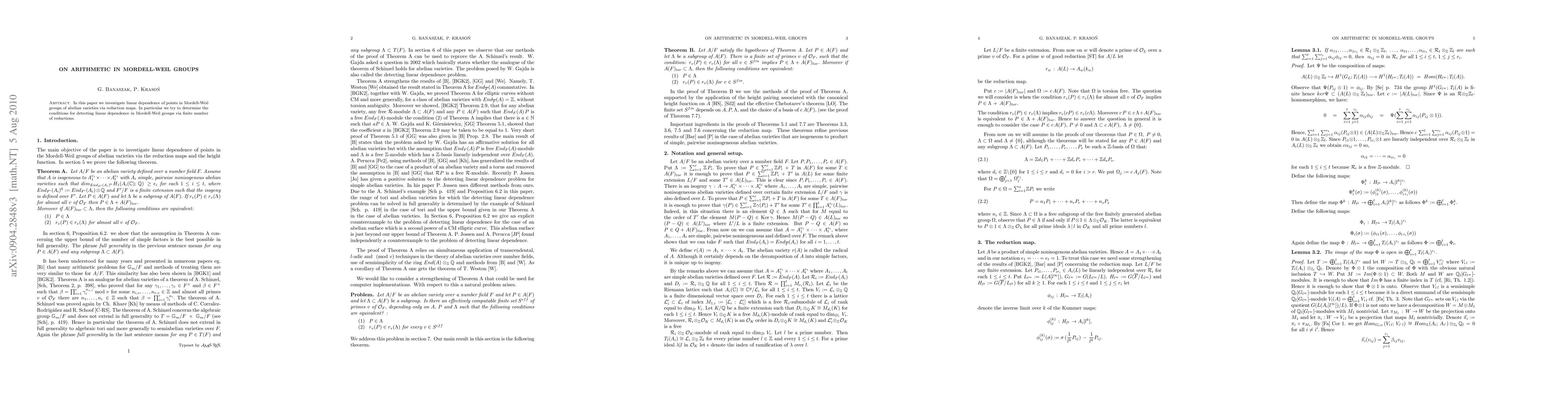 This paper explores the linear dependence of points in Mordell-Weil groups of abelian varieties through reduction maps, focusing on identifying conditions for detecting such dependence using a finite number of reductions.
