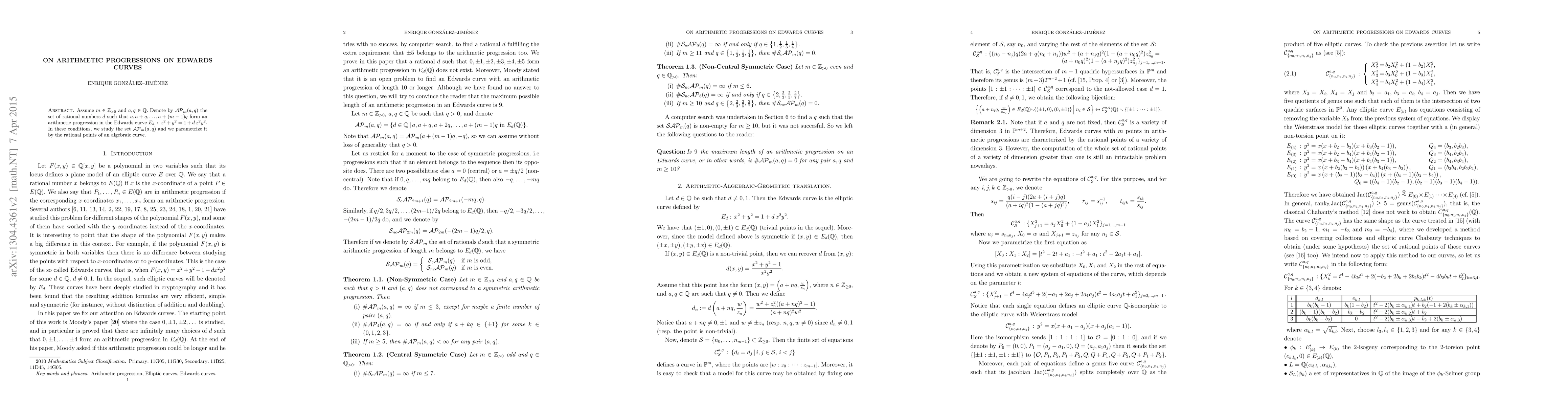 This research contributes to understanding arithmetic progressions on Edwards curves, which have applications in cryptography and number theory.