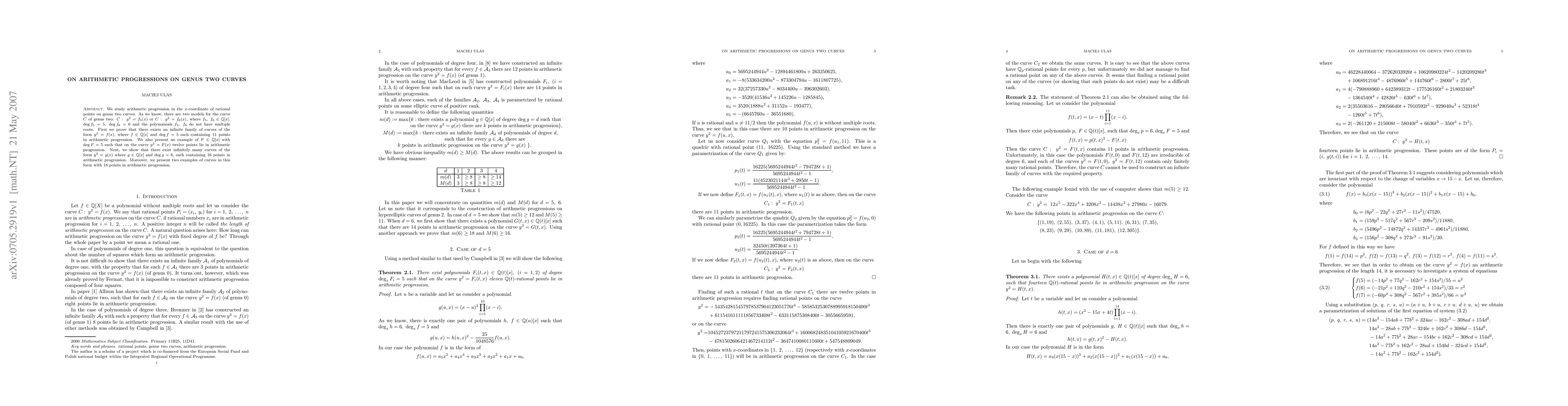 This paper investigates arithmetic progressions in the $x$-coordinates of rational points on genus two curves, proving the existence of infinite families of such curves with specific numbers of points in arithmetic progression, including 11 points for degree 5 curves and 16 points for degree 6 curves, with examples extending to 12 and 18 points respectively.