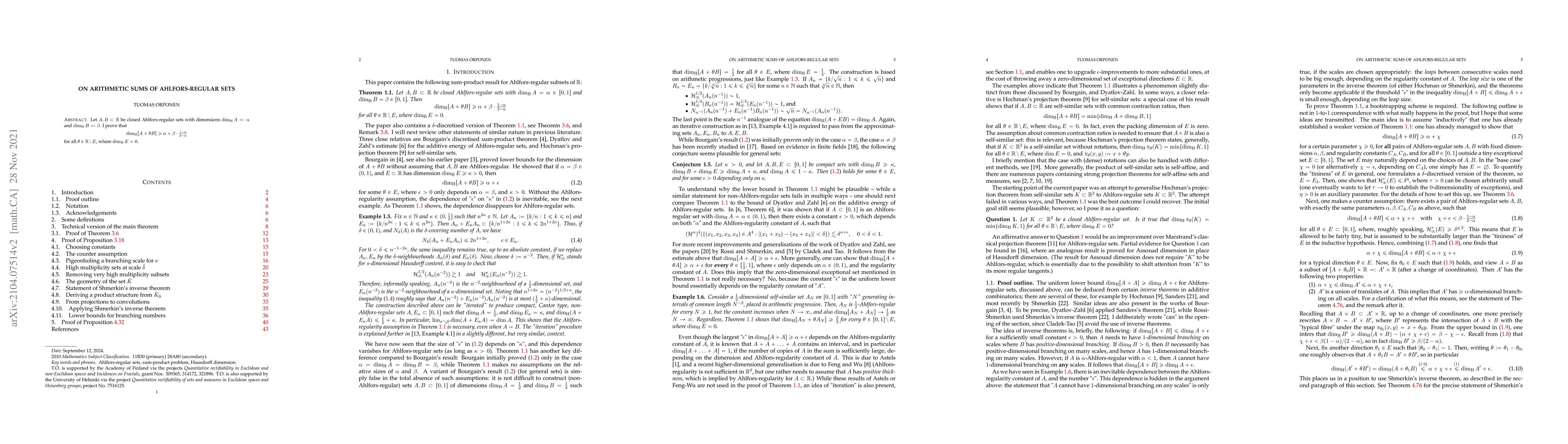 This paper establishes a lower bound for the Hausdorff dimension of the sum of an Ahlfors-regular set and its scaled version, in terms of the original dimensions and scaling factor.