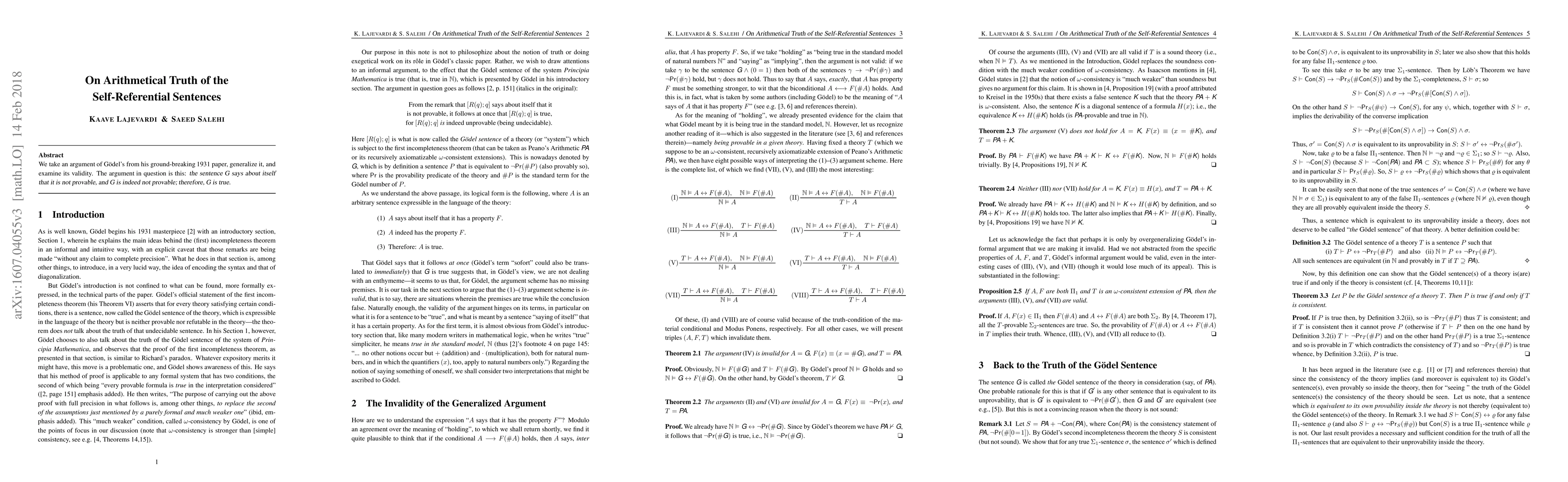 We take an argument of G\"odel's from his ground-breaking 1931 paper, generalize it, and examine its validity. The argument in question is this: the sentence $G$ says about itself that it is not provable, and $G$ is indeed not provable; therefore, $G$ is true.