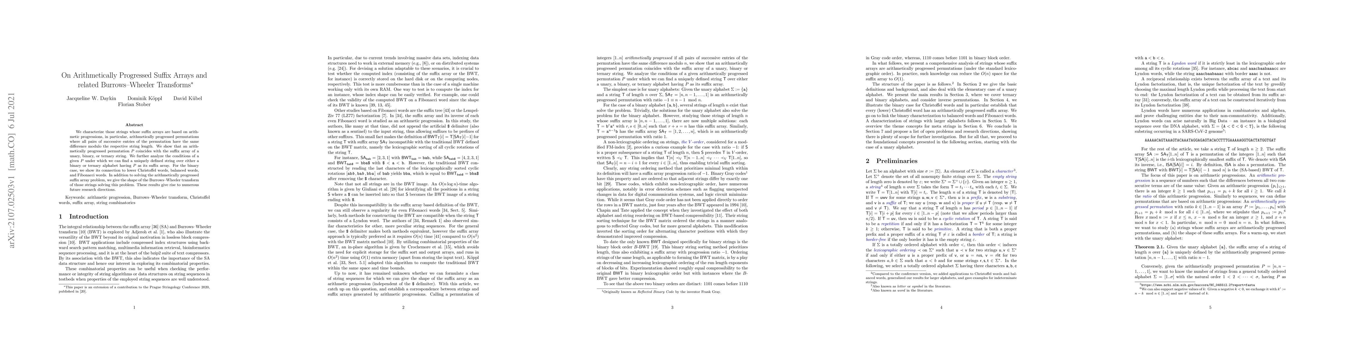 We characterize those strings whose suffix arrays are based on arithmetic progressions, in particular, arithmetically progressed permutations where all pairs of successive entries of the permutation have the same difference modulo the respective string length. We show that an arithmetically progressed permutation $P$ coincides with the suffix array of a unary, binary, or ternary string. We further analyze the conditions of a given $P$ under which we can find a uniquely defined string over either a binary or ternary alphabet having $P$ as its suffix array. For the binary case, we show its connection to lower Christoffel words, balanced words, and Fibonacci words. In addition to solving the arithmetically progressed suffix array problem, we give the shape of the Burrows-Wheeler transform of those strings solving this problem. These results give rise to numerous future research directions.