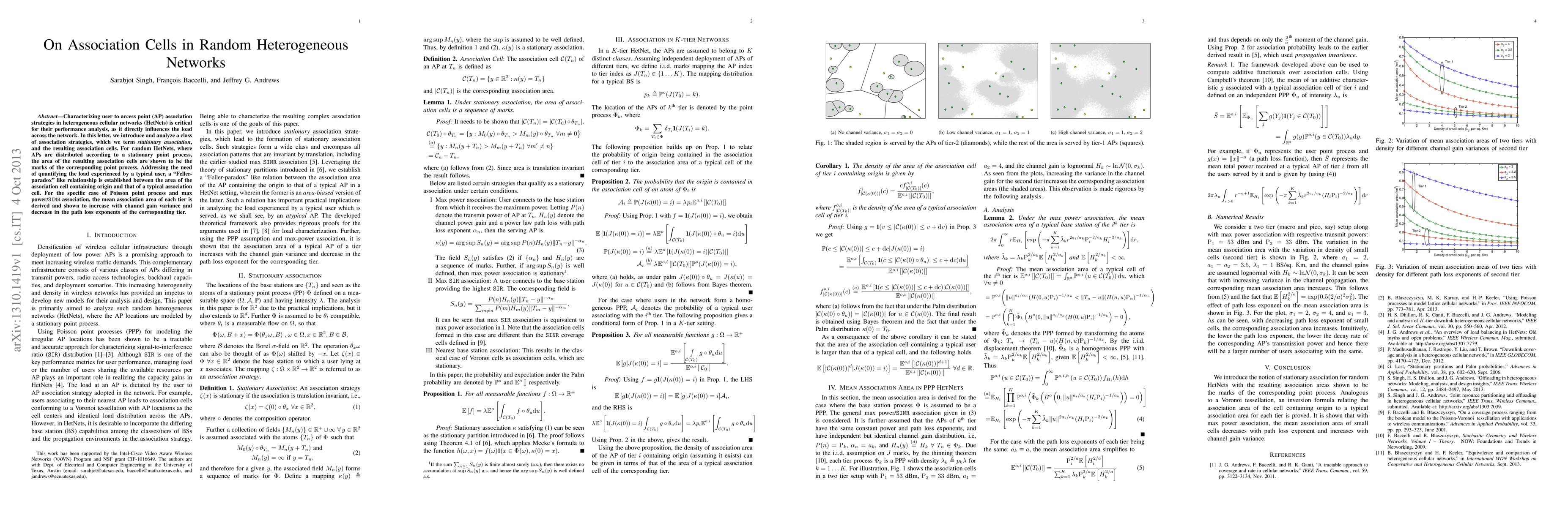Characterizing user to access point (AP) association strategies in heterogeneous cellular networks (HetNets) is critical for their performance analysis, as it directly influences the load across the network. In this letter, we introduce and analyze a class of association strategies, which we term stationary association, and the resulting association cells. For random HetNets, where APs are distributed according to a stationary point process, the area of the resulting association cells are shown to be the marks of the corresponding point process. Addressing the need of quantifying the load experienced by a typical user, a "Feller-paradox" like relationship is established between the area of the association cell containing origin and that of a typical association cell. For the specific case of Poisson point process and max power/SINR association, the mean association area of each tier is derived and shown to increase with channel gain variance and decrease in the path loss exponents of the corresponding tier.