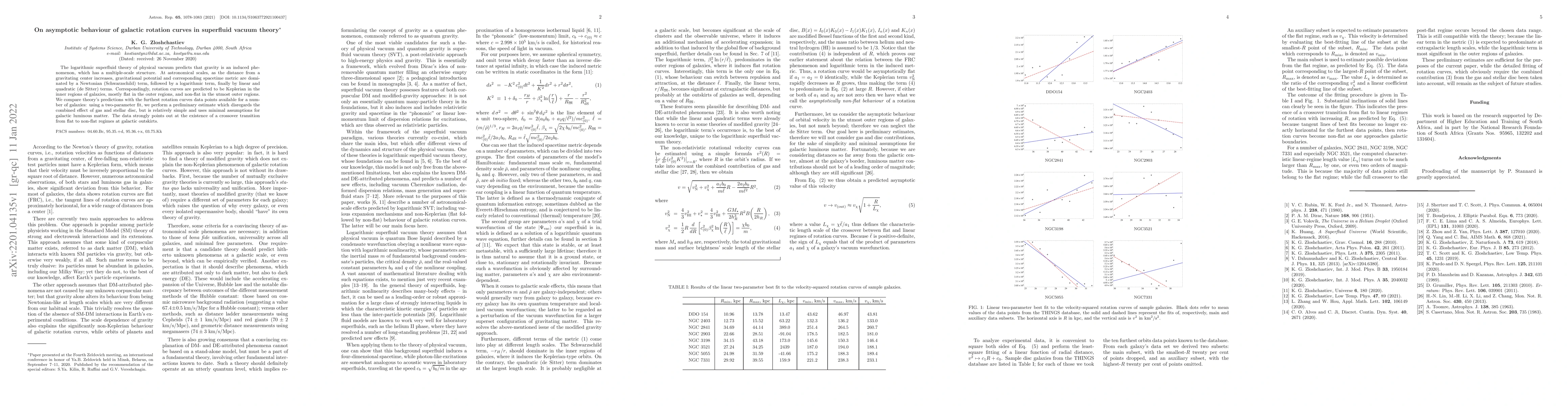 The logarithmic superfluid theory of physical vacuum predicts that gravity is an induced phenomenon, which has a multiple-scale structure. At astronomical scales, as the distance from a gravitating center increases, gravitational potential and corresponding spacetime metric are dominated by a Newtonian (Schwarzschild) term, followed by a logarithmic term, finally by linear and quadratic (de Sitter) terms. Correspondingly, rotation curves are predicted to be Keplerian in the inner regions of galaxies, mostly flat in the outer regions, and non-flat in the utmost outer regions. We compare theory's predictions with the furthest rotation curves data points available for a number of galaxies: using a two-parameter fit, we perform a preliminary estimate which disregards the combined effect of gas and stellar disc, but is relatively simple and uses minimal assumptions for galactic luminous matter. The data strongly points out at the existence of a crossover transition from flat to non-flat regimes at galactic outskirts.