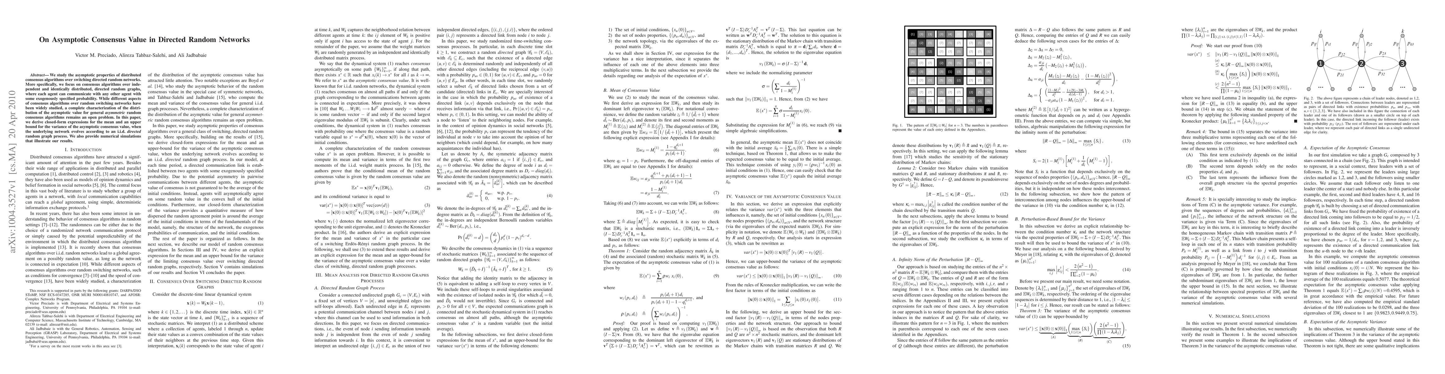 This paper derives closed-form expressions for the mean and variance of the asymptotic consensus value in distributed consensus algorithms over switching directed random networks. It provides a complete characterization for general asymmetric random consensus algorithms and supports findings with numerical simulations.