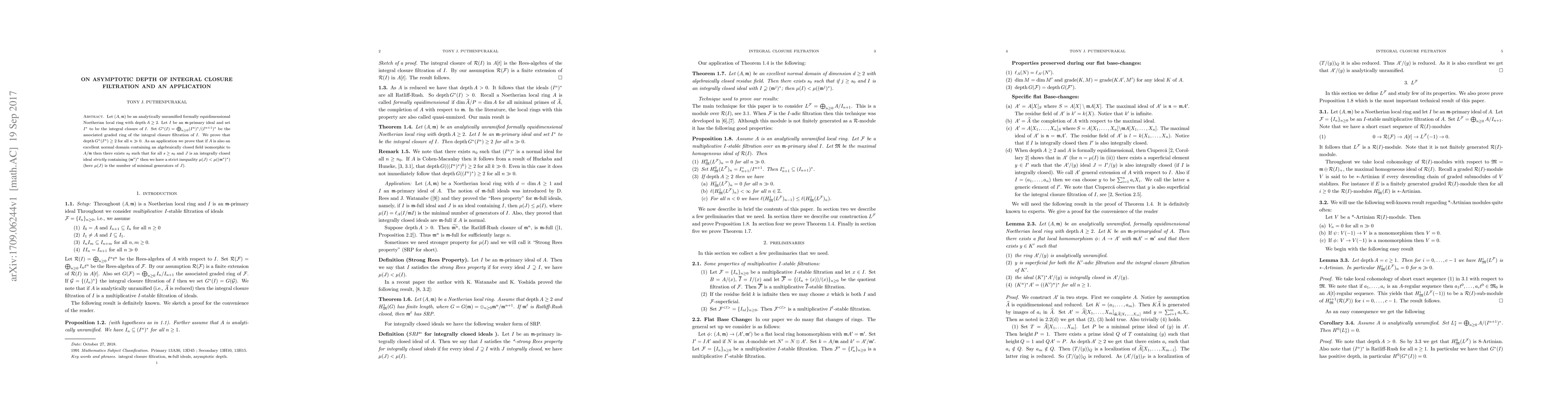 Let $(A,\mathfrak{m})$ be an analytically unramified formally equidimensional Noetherian local ring with $\ depth \ A \geq 2$. Let $I$ be an $\mathfrak{m}$-primary ideal and set $I^*$ to be the integral closure of $I$. Set $G^*(I) = \bigoplus_{n\geq 0} (I^n)^*/(I^{n+1})^*$ be the associated graded ring of the integral closure filtration of $I$. We prove that $\ depth \ G^*(I^n) \geq 2$ for all $n \gg 0$. As an application we prove that if $A$ is also an excellent normal domain containing an algebraically closed field isomorphic to $A/\m$ then there exists $s_0$ such that for all $s \geq s_0$ and $J$ is an integrally closed ideal \emph{strictly} containing $(\mathfrak{m}^s)^*$ then we have a strict inequality $\mu(J) < \mu((\mathfrak{m}^s)^*)$ (here $\mu(J)$ is the number of minimal generators of $J$).