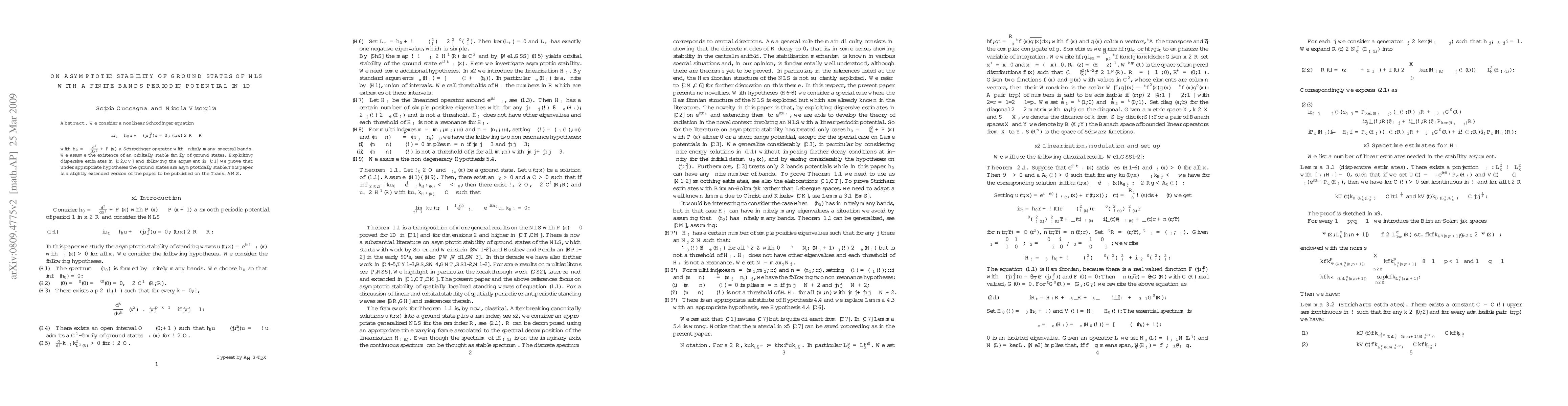 Summary: This paper investigates the asymptotic stability of ground states in a nonlinear Schrödinger equation with a finite bands periodic potential in 1D. It proves that under certain conditions, these ground states exhibit asymptotic stability.