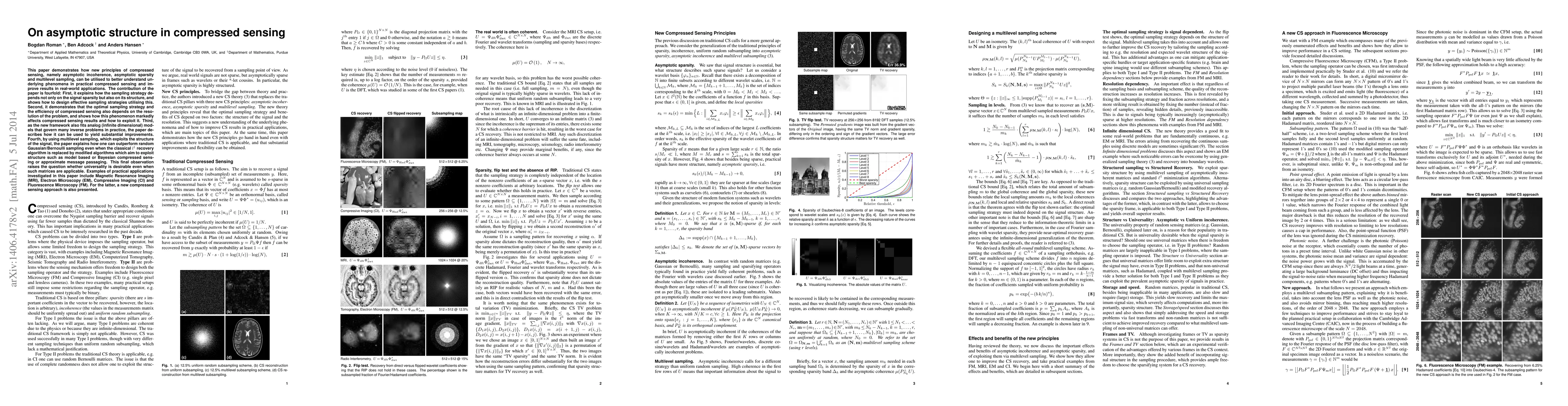 This paper introduces new principles for compressed sensing, including asymptotic incoherence, sparsity, and multilevel sampling, to enhance practical applications. It demonstrates how sampling strategies can be optimized based on signal structure and problem resolution, and shows substantial improvements in inverse problems and various imaging techniques like MRI and EM.