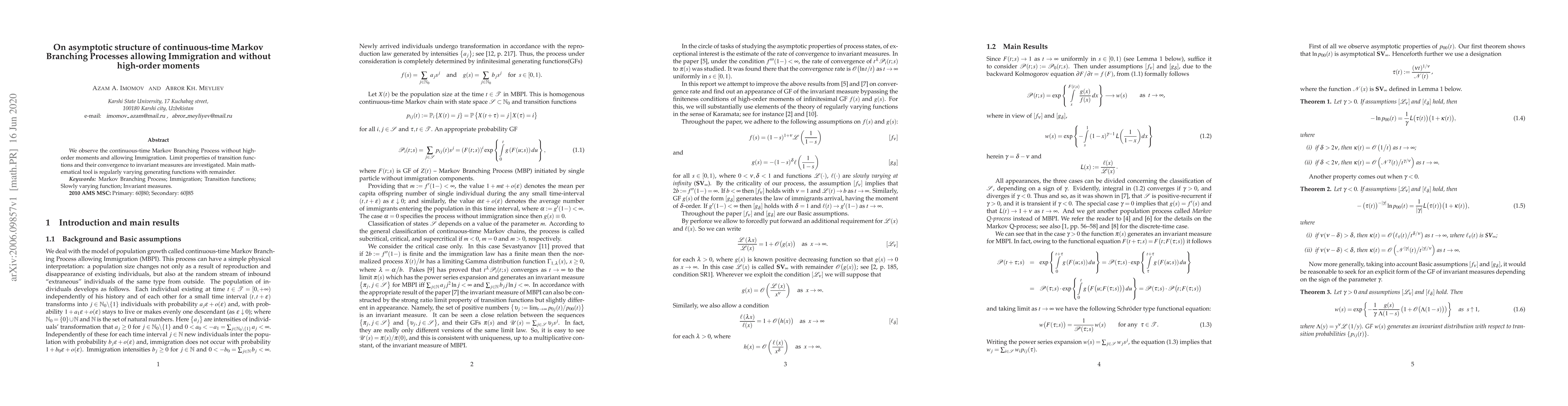Researchers studied continuous-time Markov Branching Processes with immigration, focusing on the convergence of transition functions to invariant measures using regularly varying generating functions.
