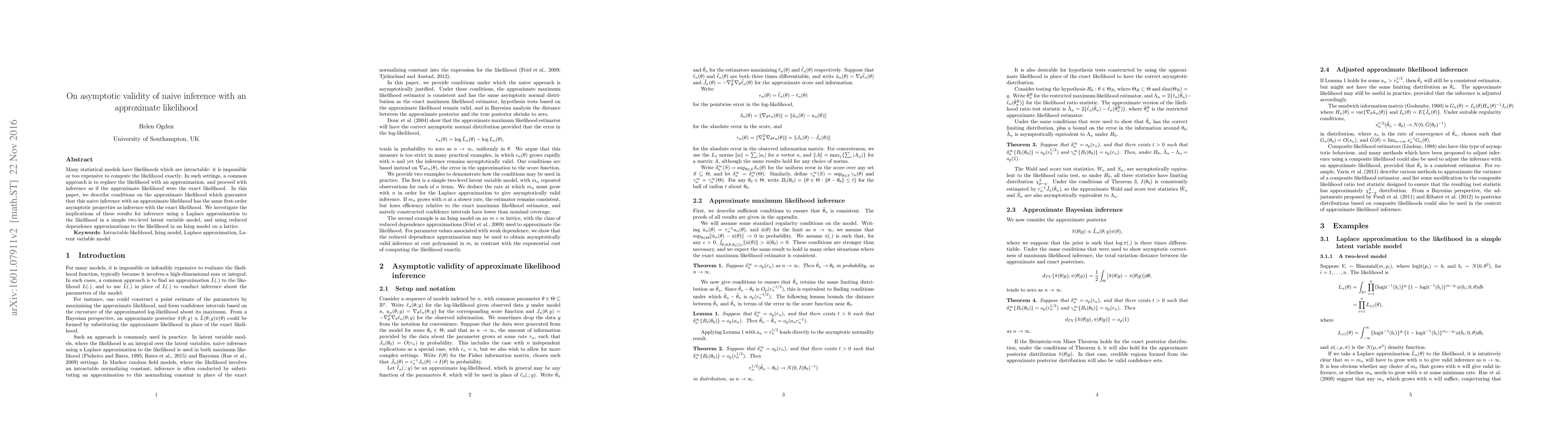 This paper explores conditions under which naive inference using an approximate likelihood retains the same asymptotic properties as inference with the exact likelihood. It applies these findings to Laplace approximations in a two-level latent variable model and reduced dependence approximations in an Ising model on a lattice.