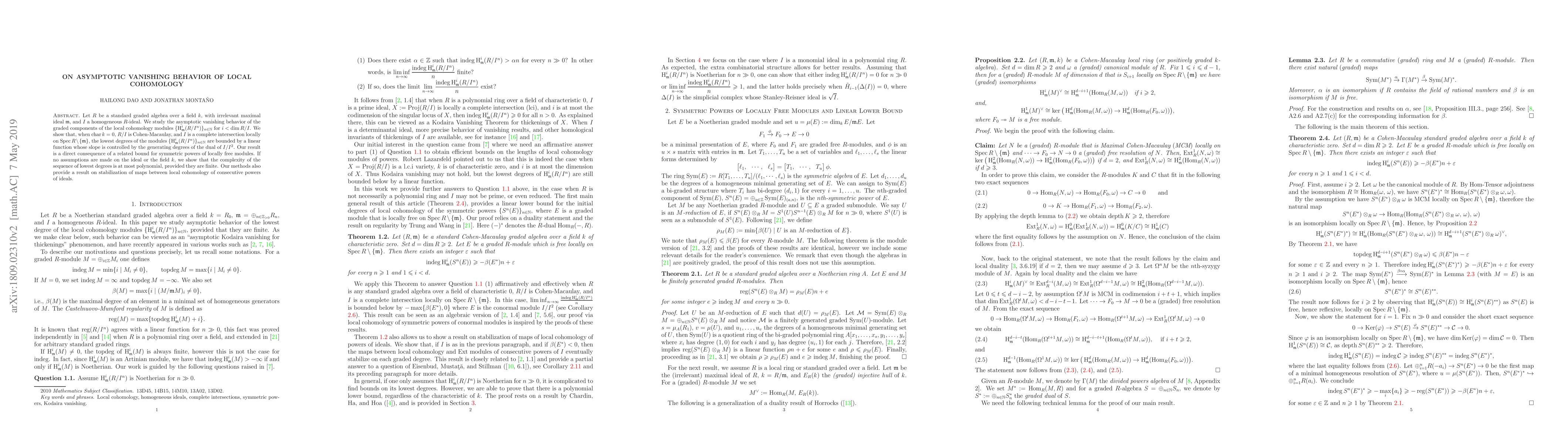 Let $R$ be a standard graded algebra over a field $k$, with irrelevant maximal ideal $\fm$, and $I$ a homogeneous $R$-ideal. We study the asymptotic vanishing behavior of the graded components of the local cohomology modules $\{\HH{i}{\fm}{R/I^n}\}_{n\in \NN}$ for $i<\dim R/I$. We show that, when $\chara k= 0$, $R/I$ is Cohen-Macaulay, and $I$ is a complete intersection locally on $\Spec R \setminus\{\fm\}$, the lowest degrees of the modules $\{\HH{i}{\fm}{R/I^n}\}_{n\in \NN}$ are bounded by a linear function whose slope is controlled by the generating degrees of the dual of $I/I^2$. Our result is a direct consequence of a related bound for symmetric powers of locally free modules. If no assumptions are made on the ideal or the field $k$, we show that the complexity of the sequence of lowest degrees is at most polynomial, provided they are finite. Our methods also provide a result on stabilization of maps between local cohomology of consecutive powers of ideals.