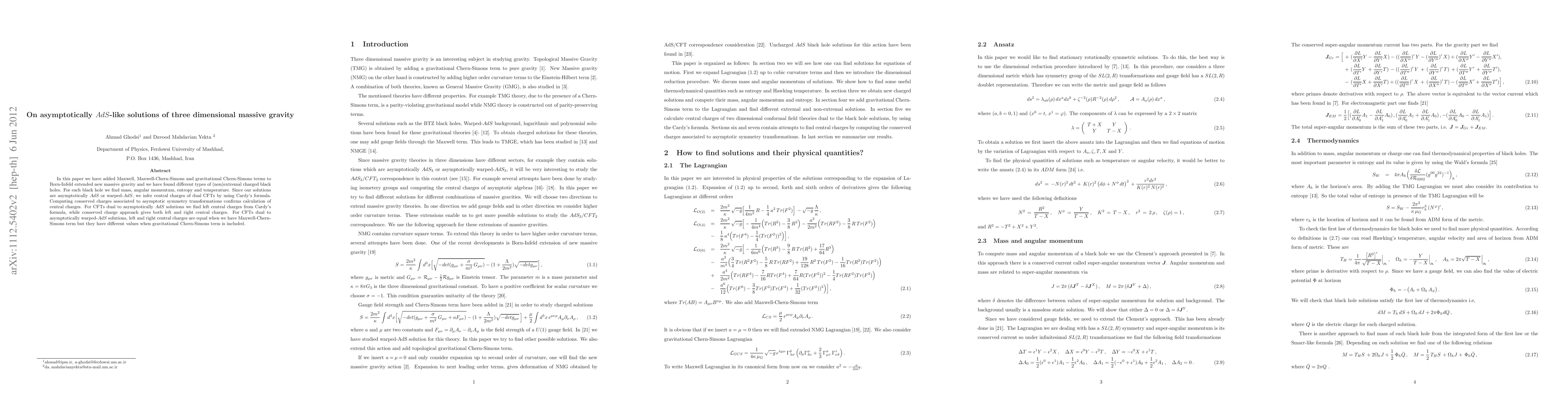 In this paper we have added Maxwell, Maxwell-Chern-Simons and gravitational Chern-Simons terms to Born-Infeld extended new massive gravity and we have found different types of (non)extremal charged black holes. For each black hole we find mass, angular momentum, entropy and temperature. Since our solutions are asymptotically AdS or warped-AdS, we infer central charges of dual CFTs by using Cardy's formula. Computing conserved charges associated to asymptotic symmetry transformations confirms calculation of central charges. For CFTs dual to asymptotically AdS solutions we find left central charges from Cardy's formula, while conserved charge approach gives both left and right central charges. For CFTs dual to asymptotically warped-AdS solutions, left and right central charges are equal when we have Maxwell-Chern-Simons term but they have different values when gravitational Chern-Simons term is included.
